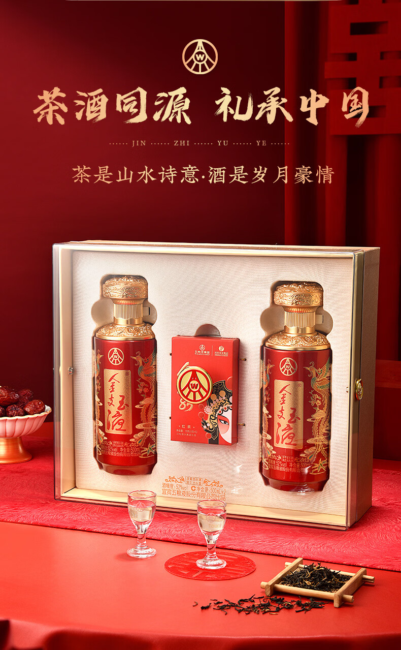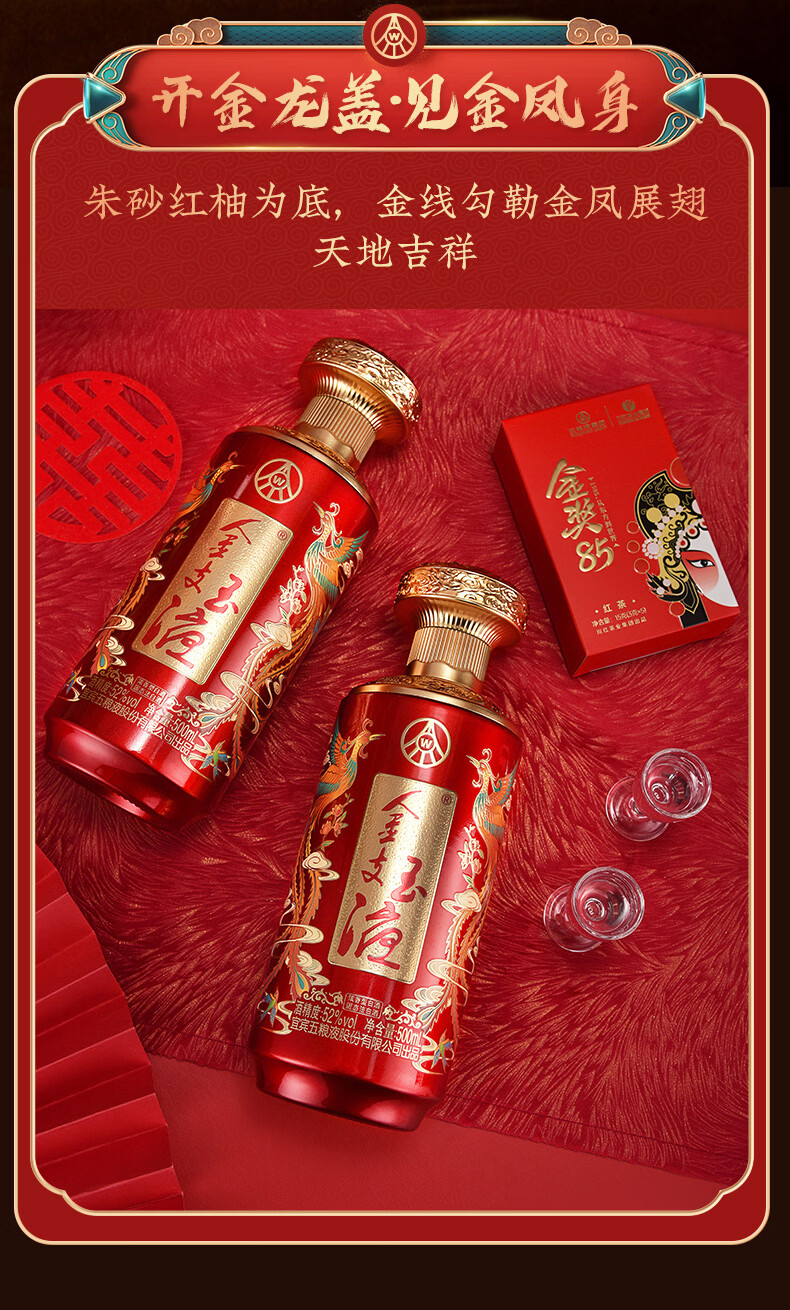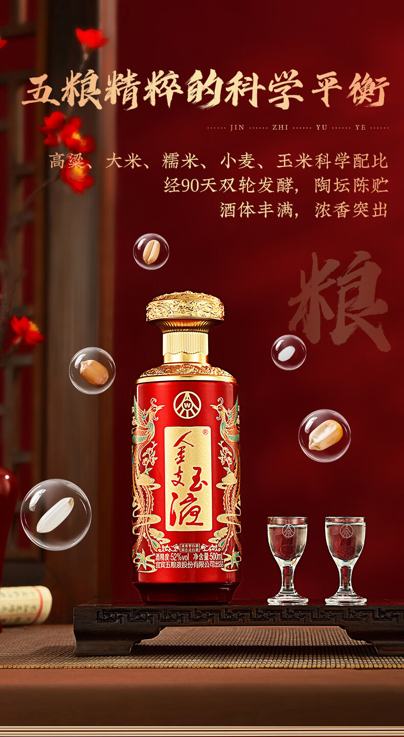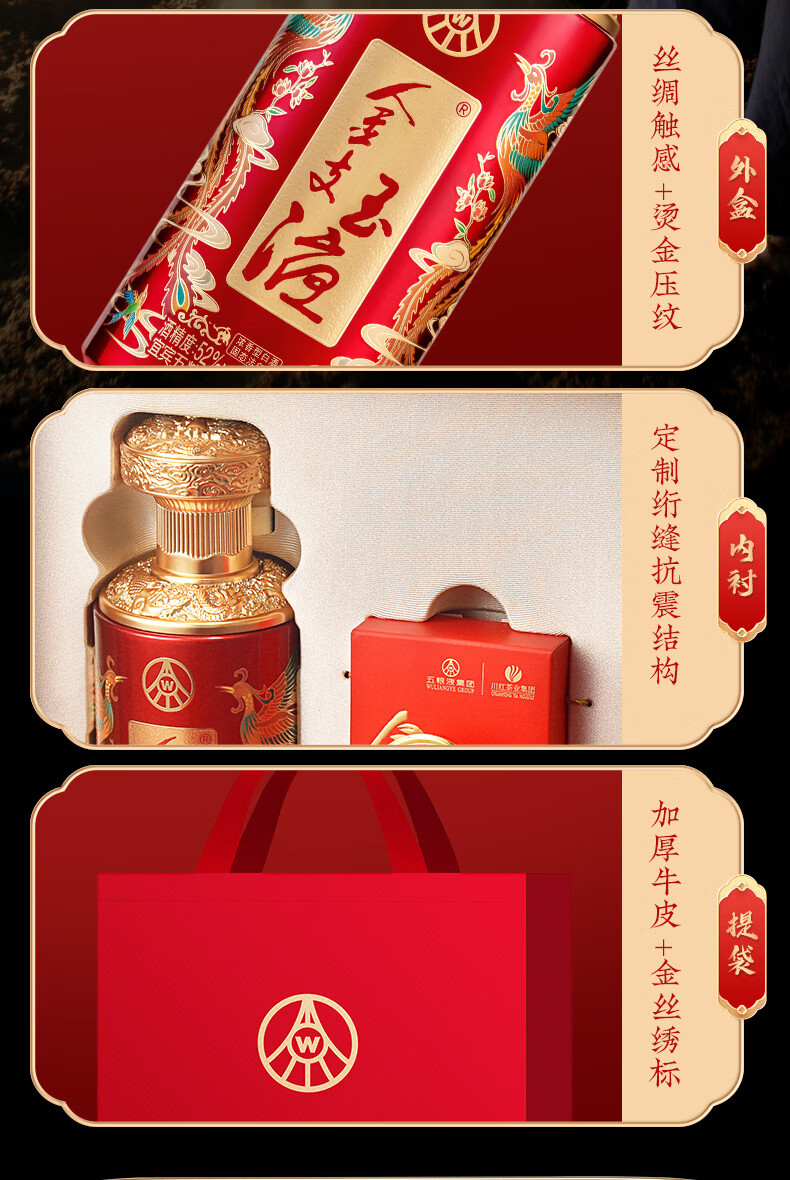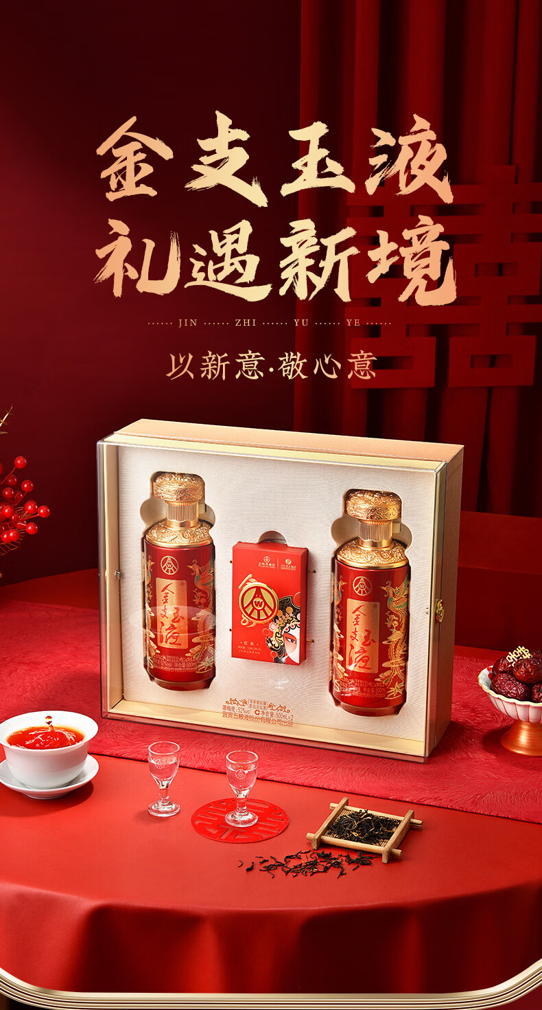 五粮浓香百鸟朝凤 金支玉液礼盒装 春节送礼浓香型白酒 52度 500mL 2瓶 礼盒搭配送礼手提袋