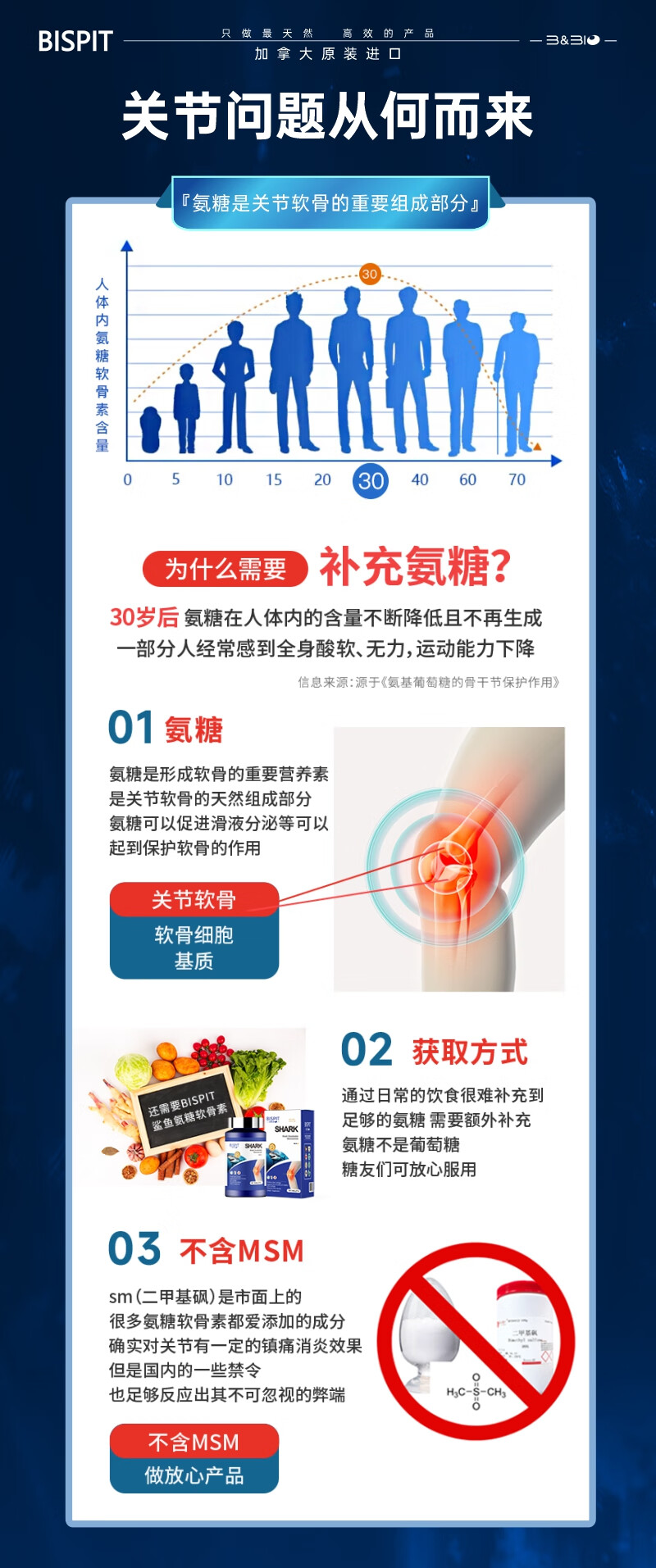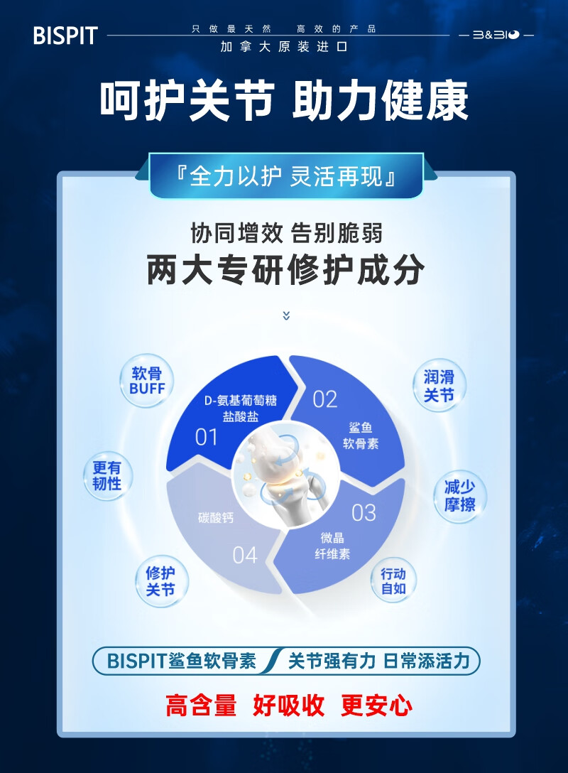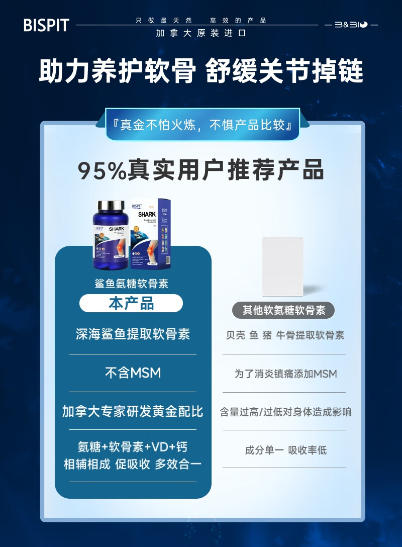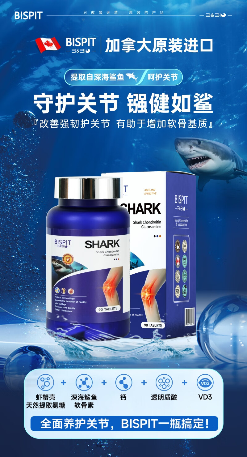 BISPIT原装进口鲨鱼氨糖软骨素钙片维骨力维生素d片养护关节增加骨密度 【进口氨糖软骨素】 90粒*6瓶 /更划算