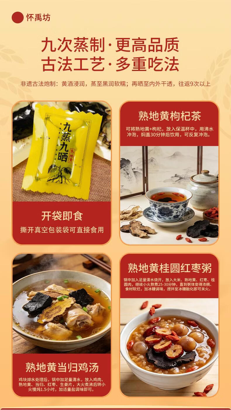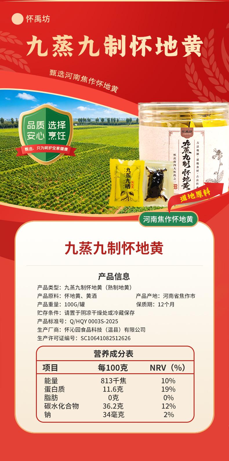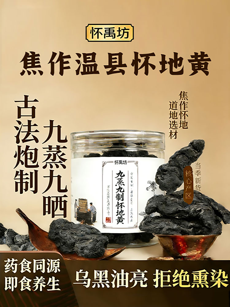 怀禹坊九蒸九晒熟地黄正宗焦作怀地黄 滋补养肾即食精品地黄可煲汤泡水 可即食可泡水煲汤泡酒 100g*5罐 九蒸九晒