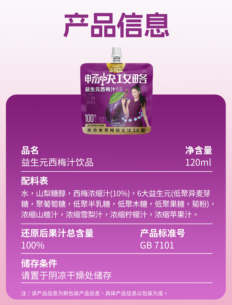 生和堂益生元西梅汁120ml 6大益生元膳食纤维复合果蔬饮料 益生元西梅汁120ml*10袋