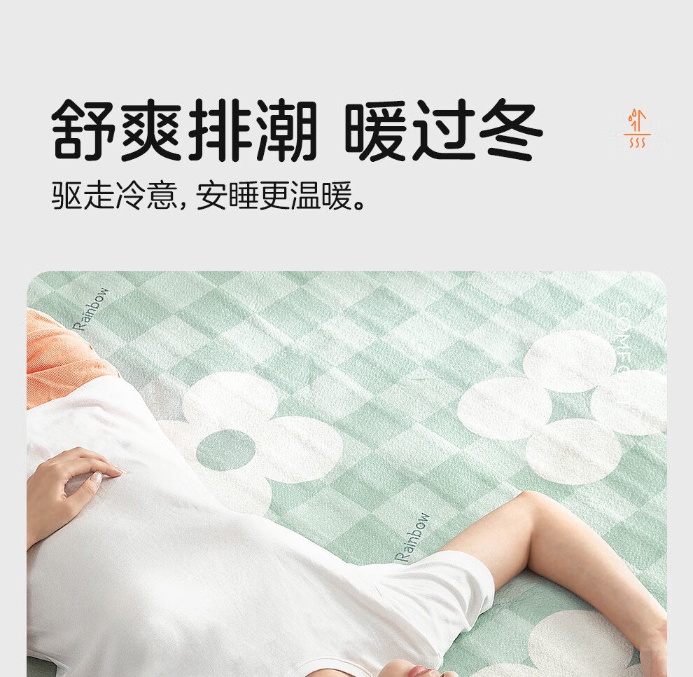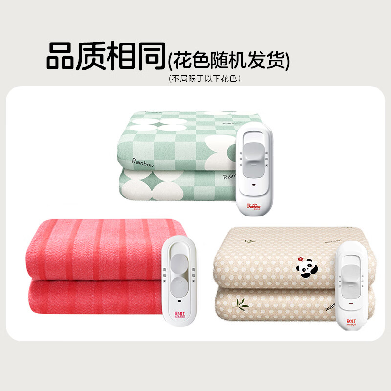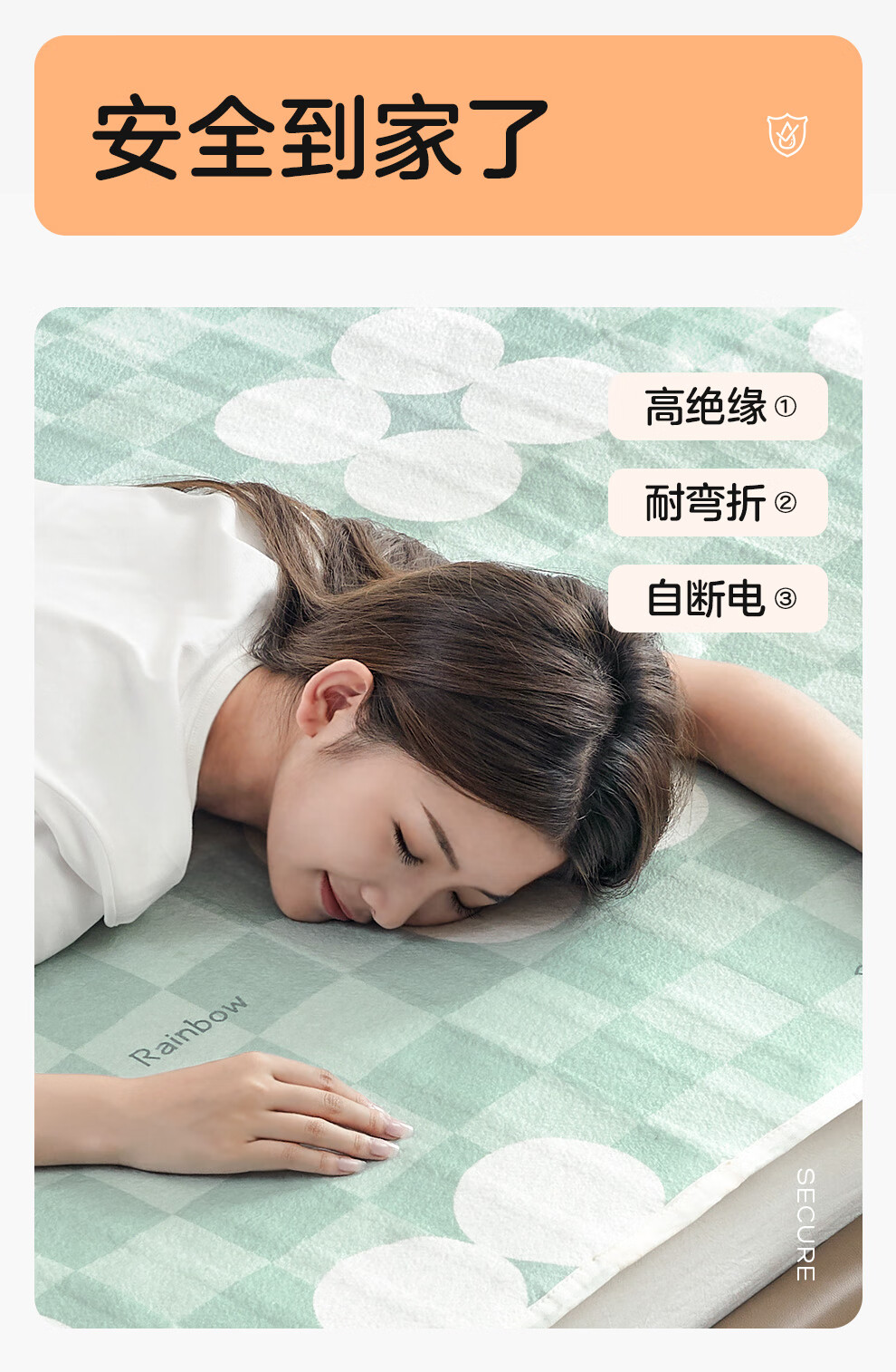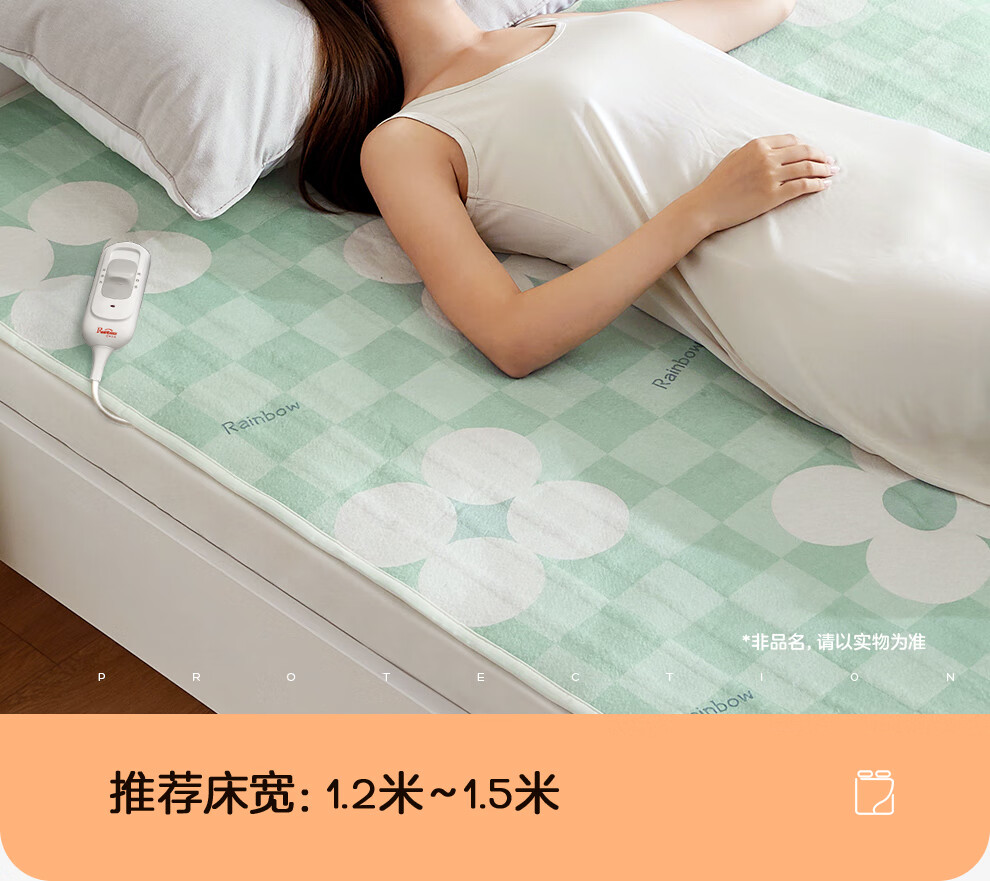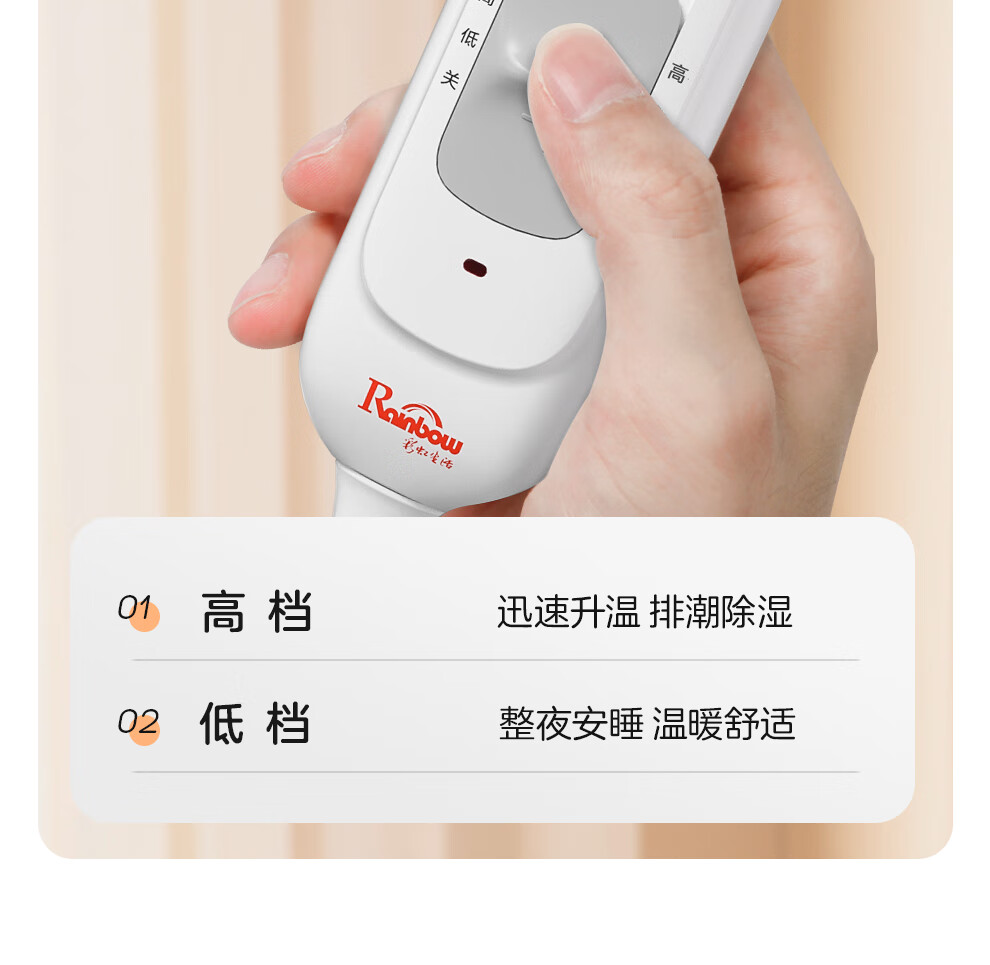 彩虹(RAINBOW) 电热毯双人1.5米长-1.2米宽高温自动断电 操作简便电褥子电毯子 单人单控1.5*0.7米无纺布