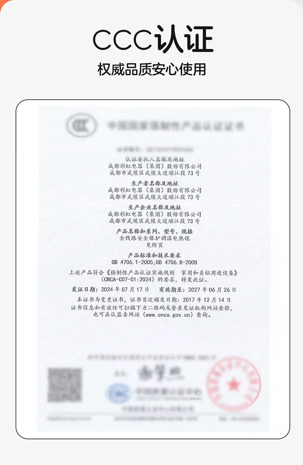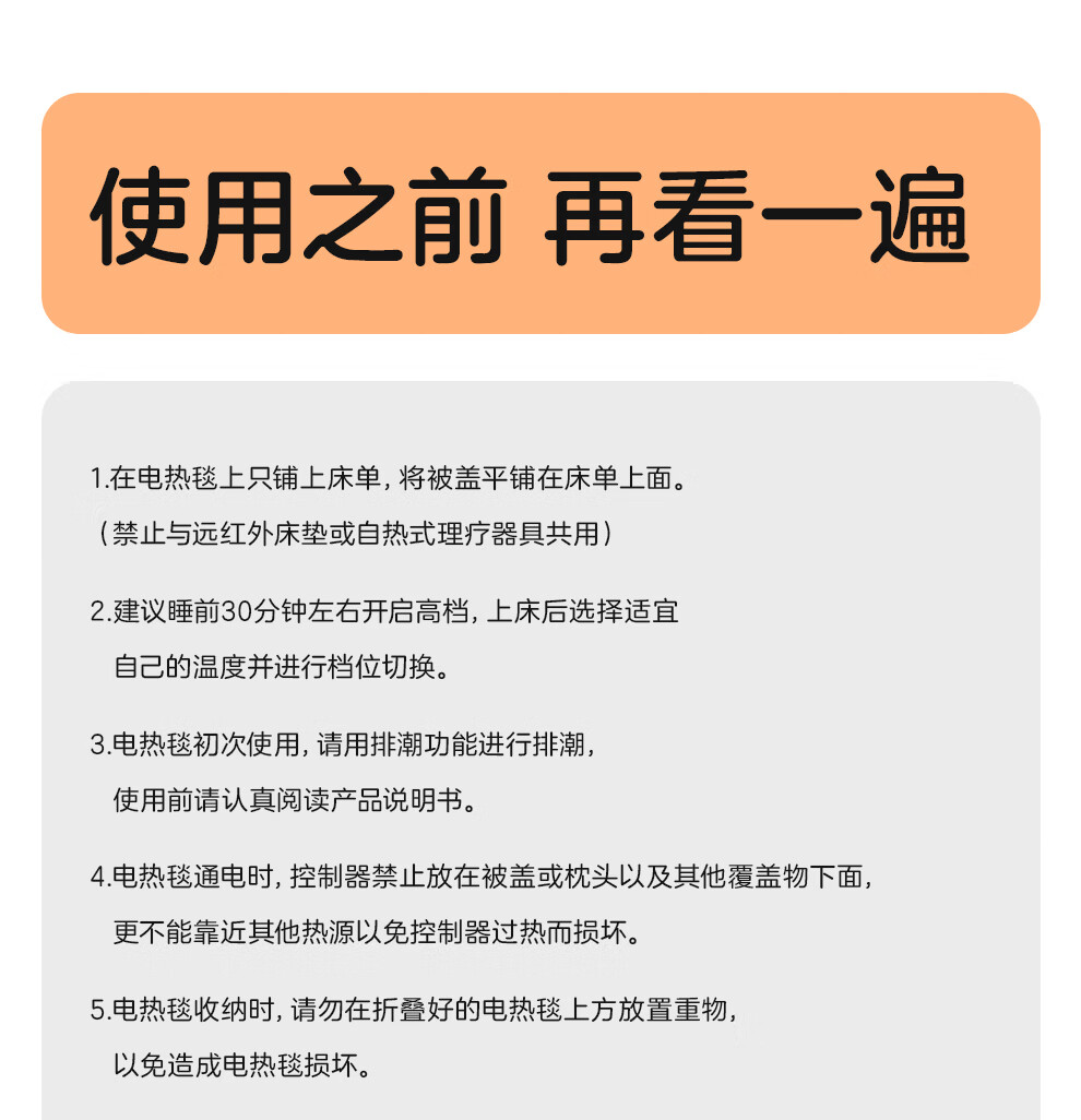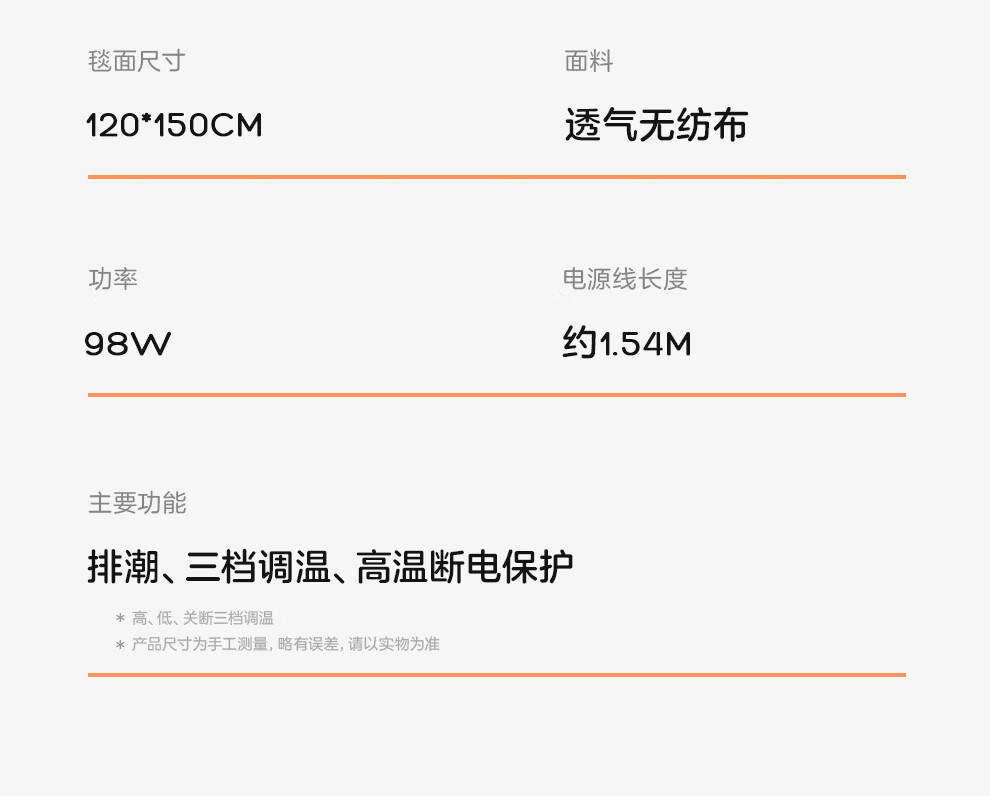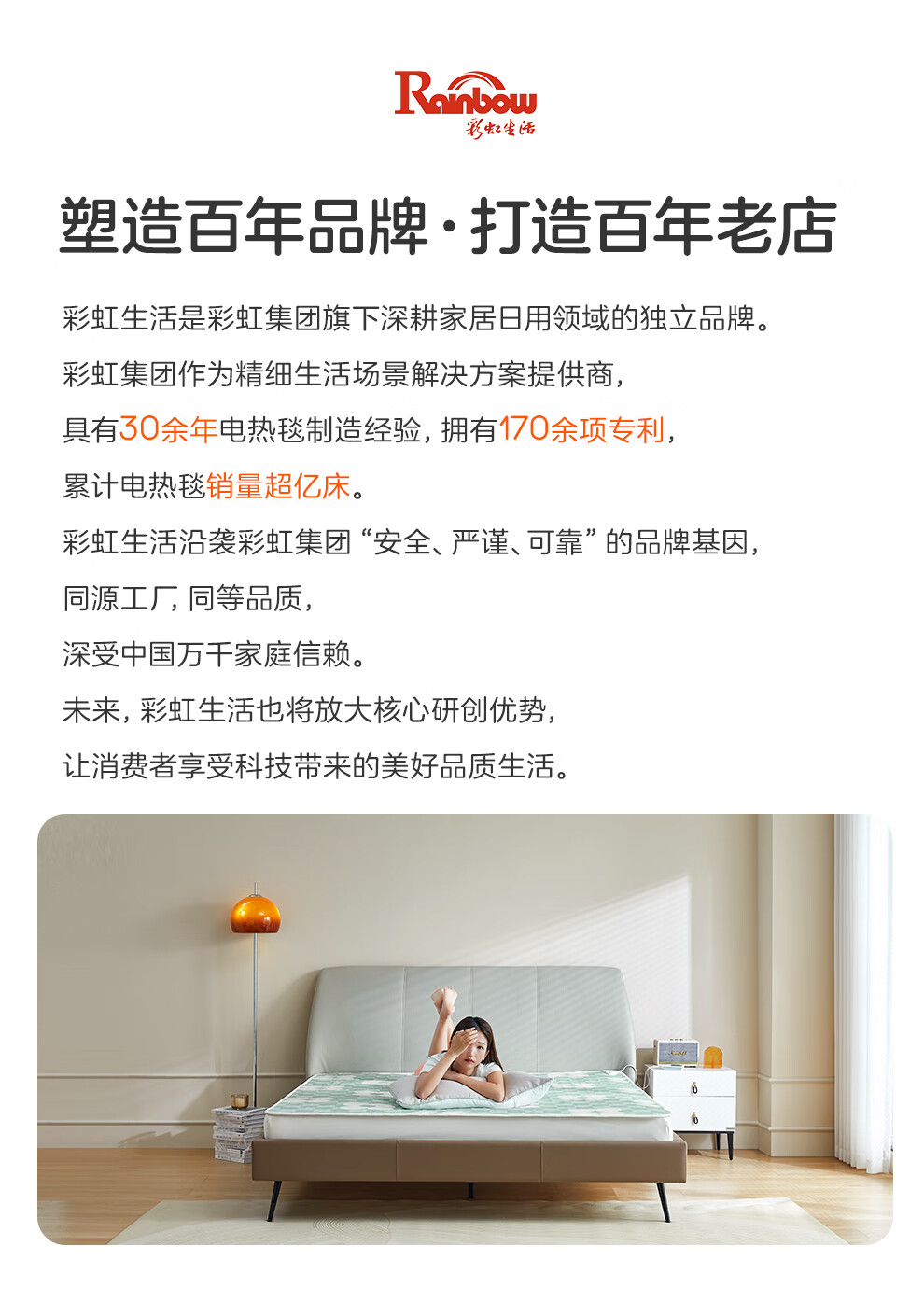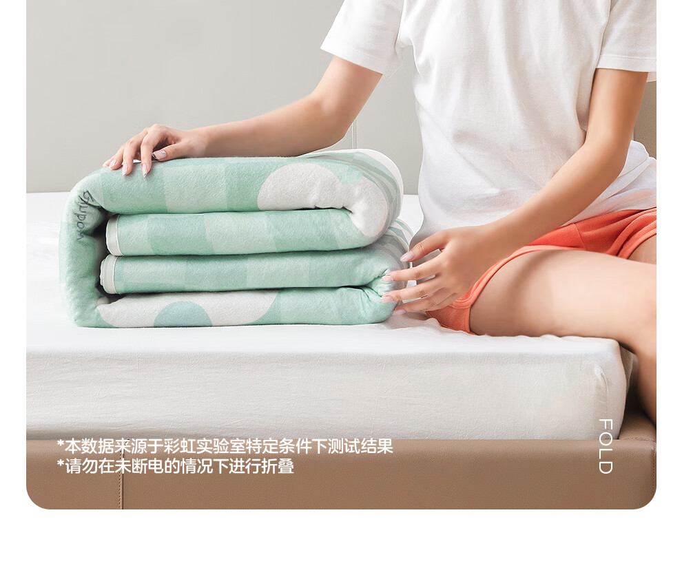 彩虹(RAINBOW) 电热毯双人1.5米长-1.2米宽高温自动断电 操作简便电褥子电毯子 单人单控1.5*0.7米无纺布