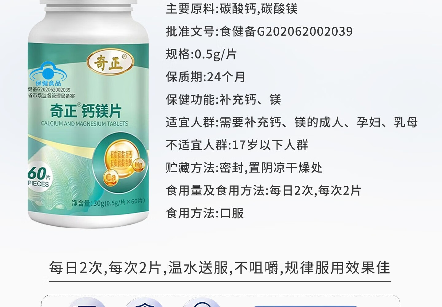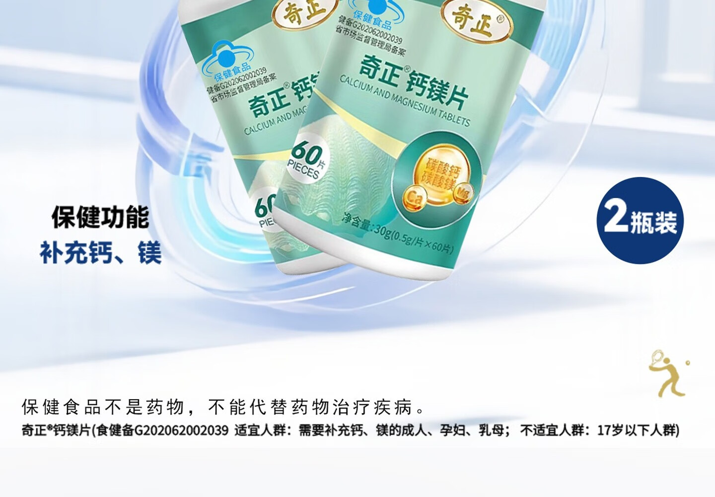 奇正钙镁片成人中老年补钙补充钙镁旗舰店正品京东健康 2瓶(30天,基础呵护装)