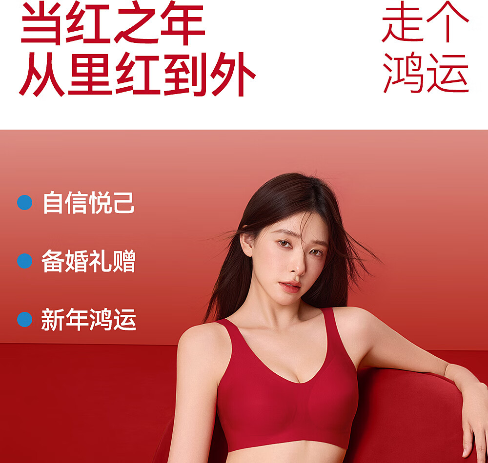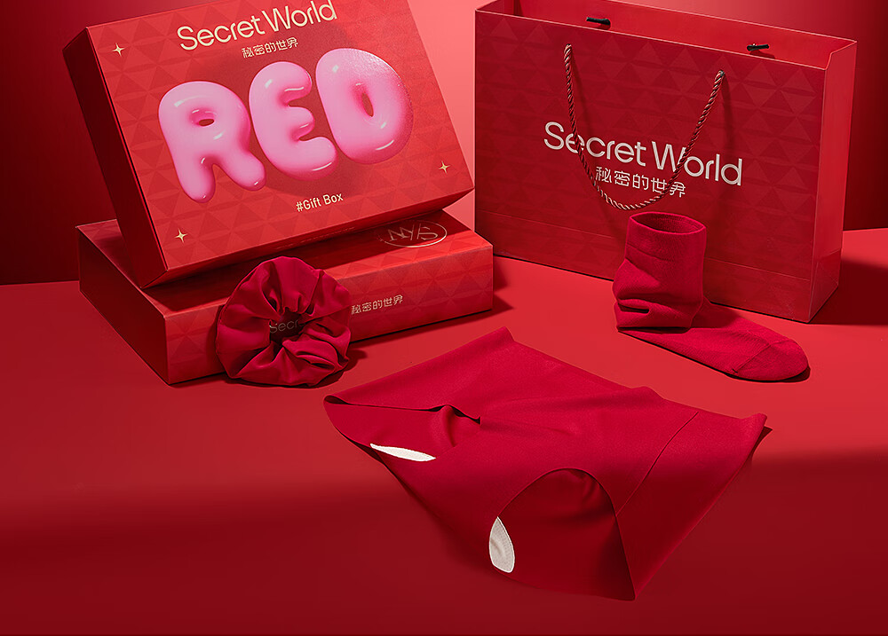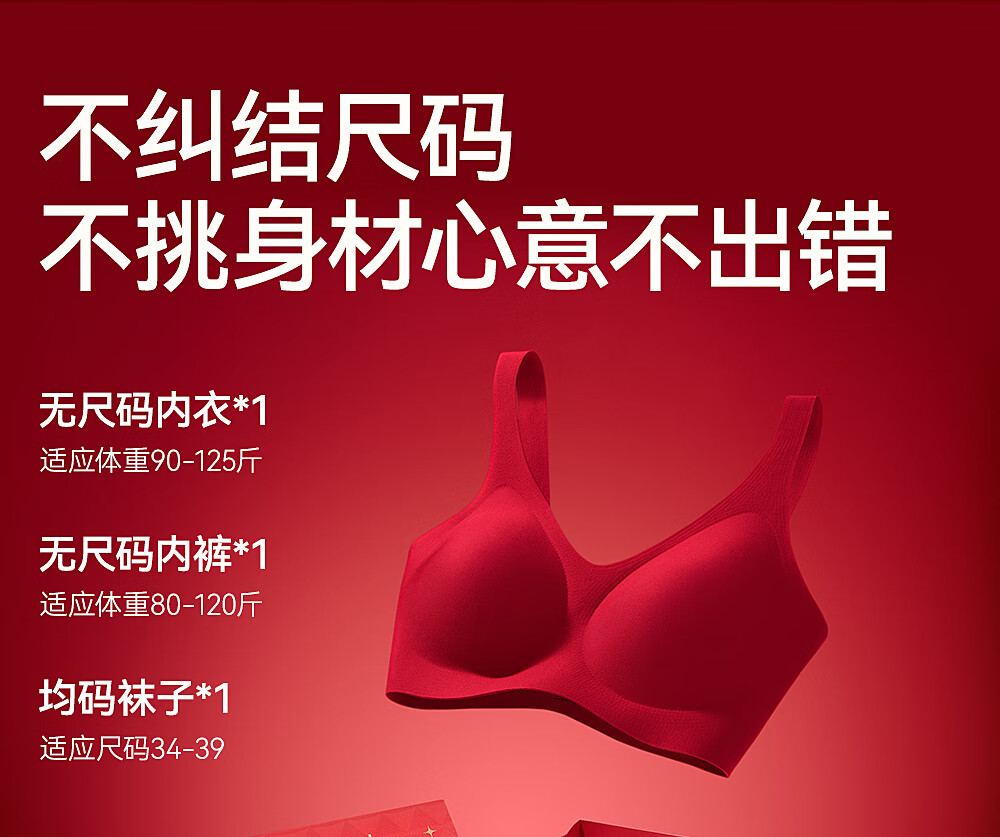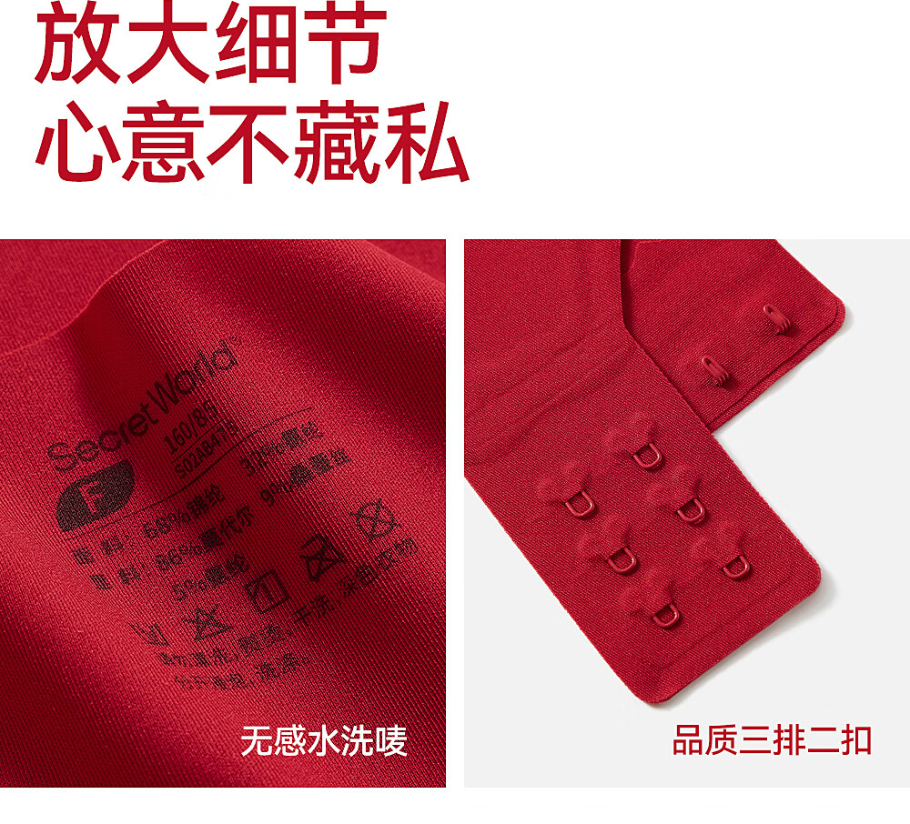 SecretWorld红色内衣女小胸聚拢结婚本命年无尺码内裤文胸罩套装 背心款-内衣裤袜三件套礼盒装 均码