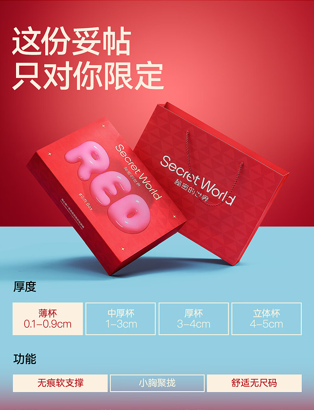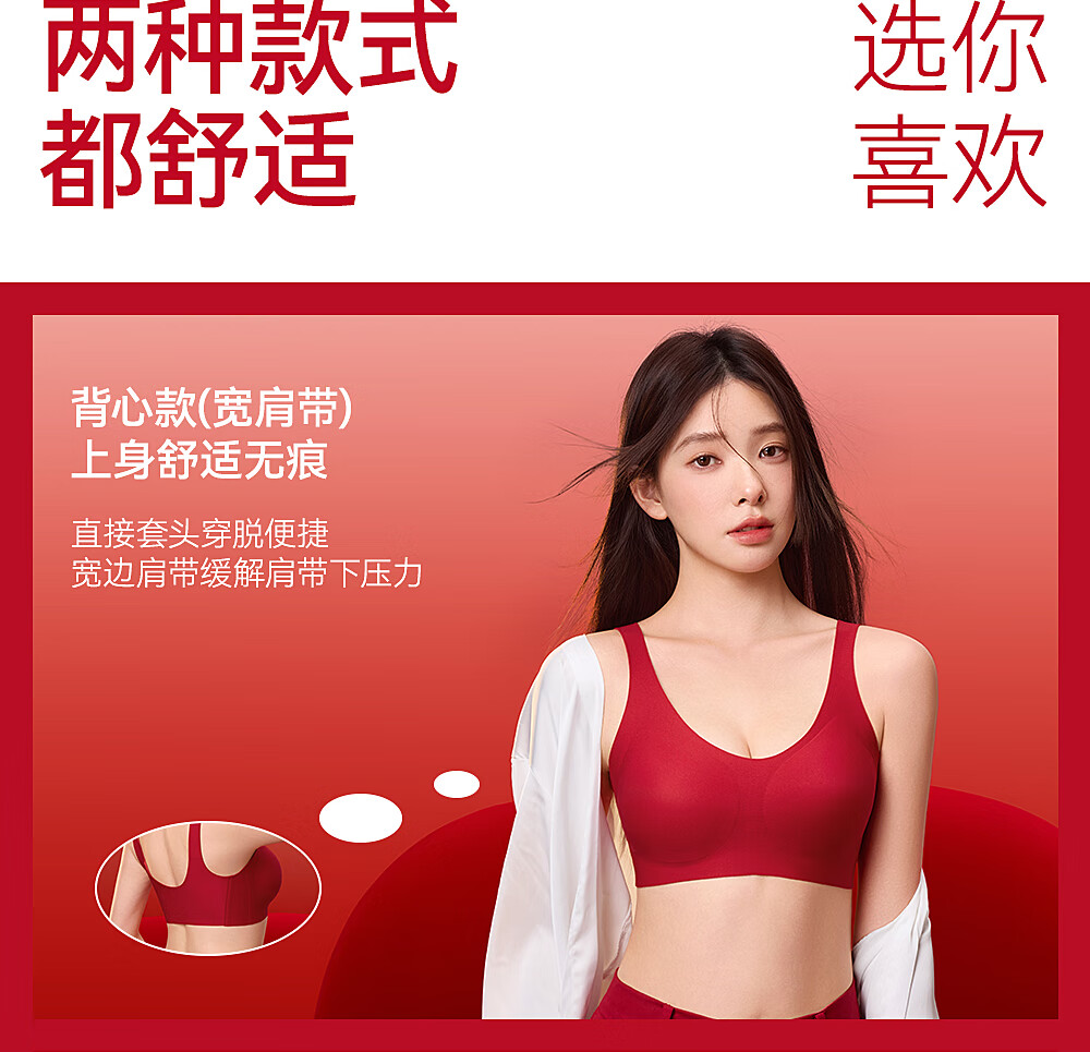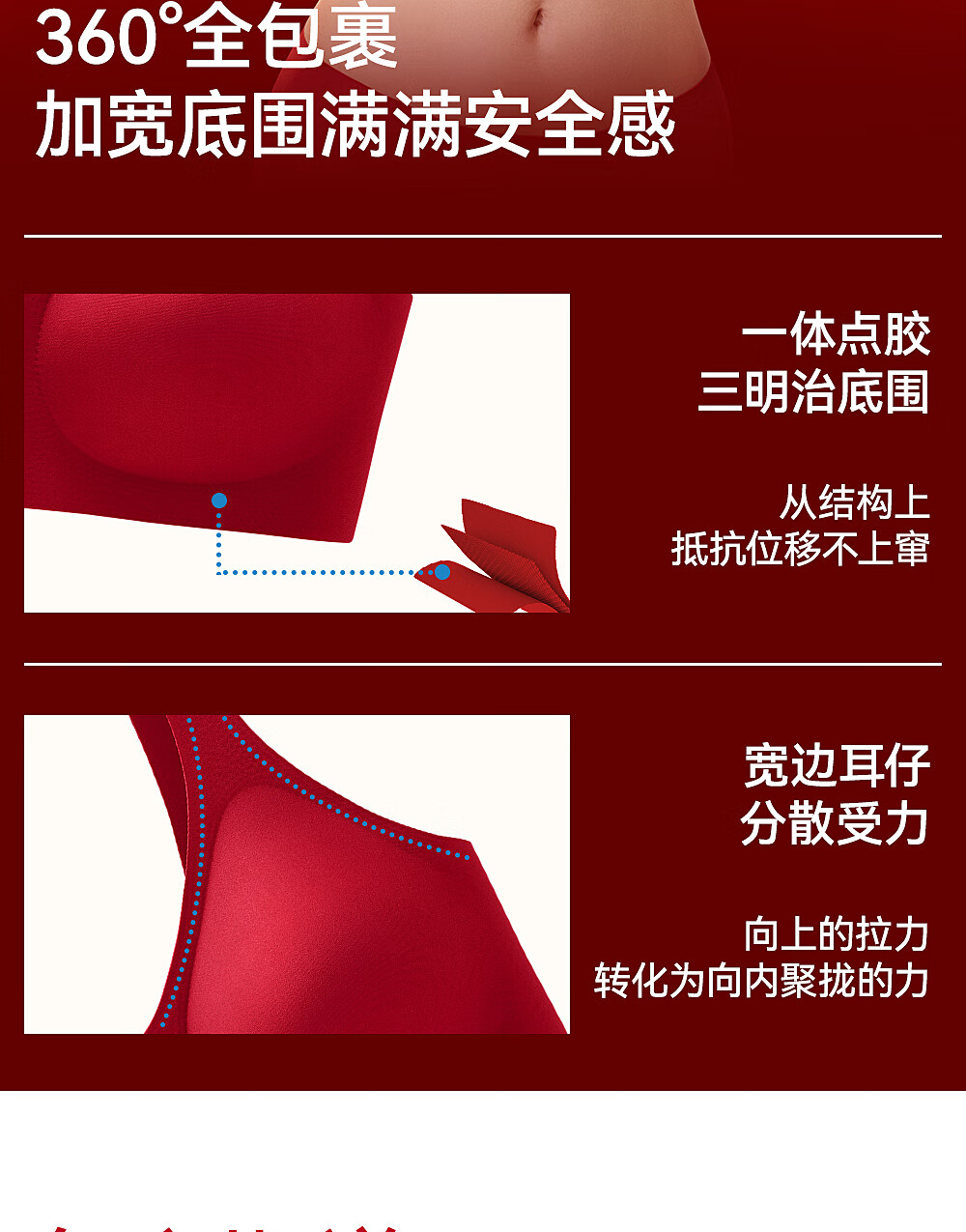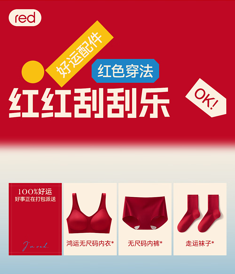 SecretWorld红色内衣女小胸聚拢结婚本命年无尺码内裤文胸罩套装 背心款-内衣裤袜三件套礼盒装 均码