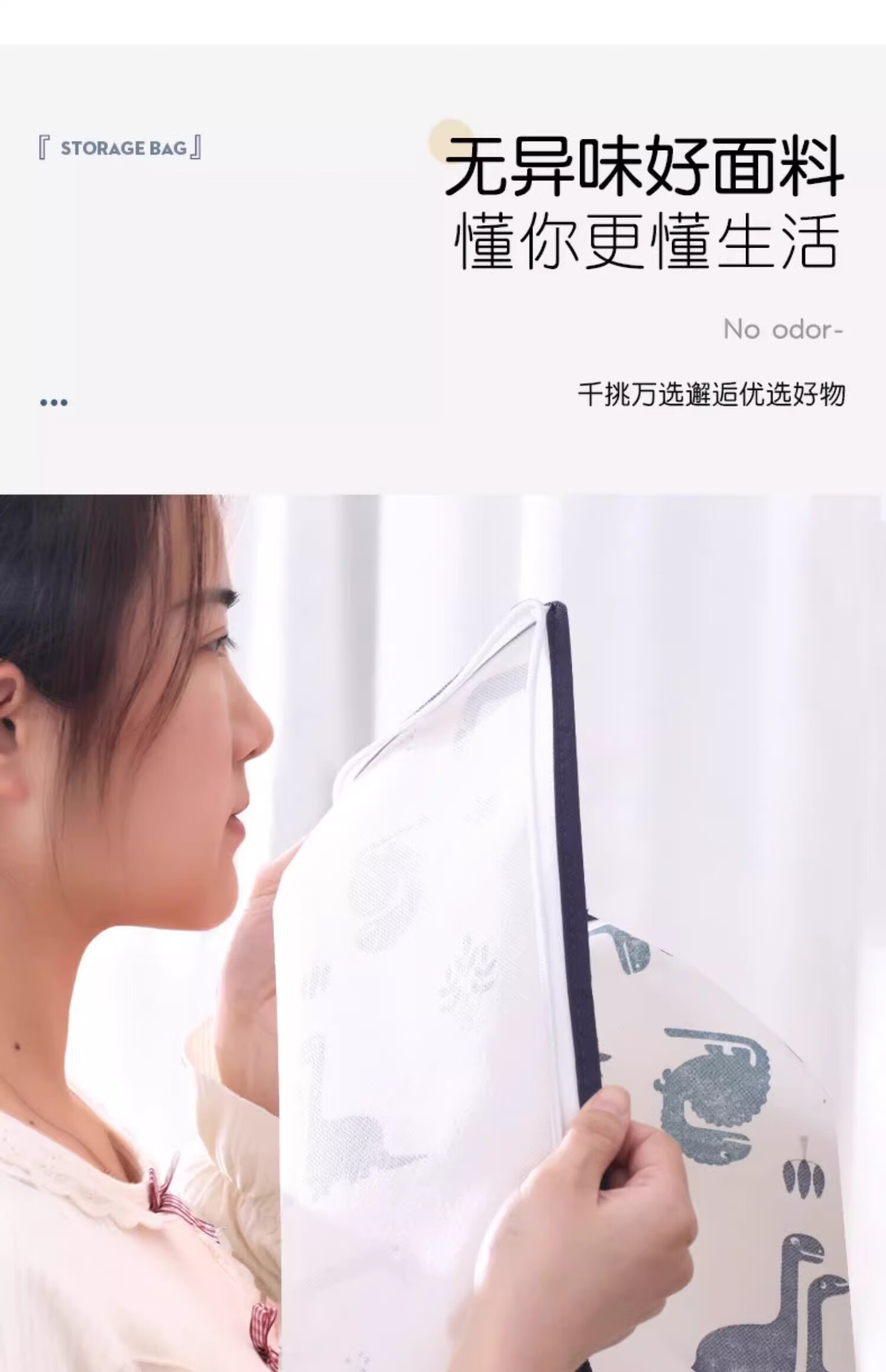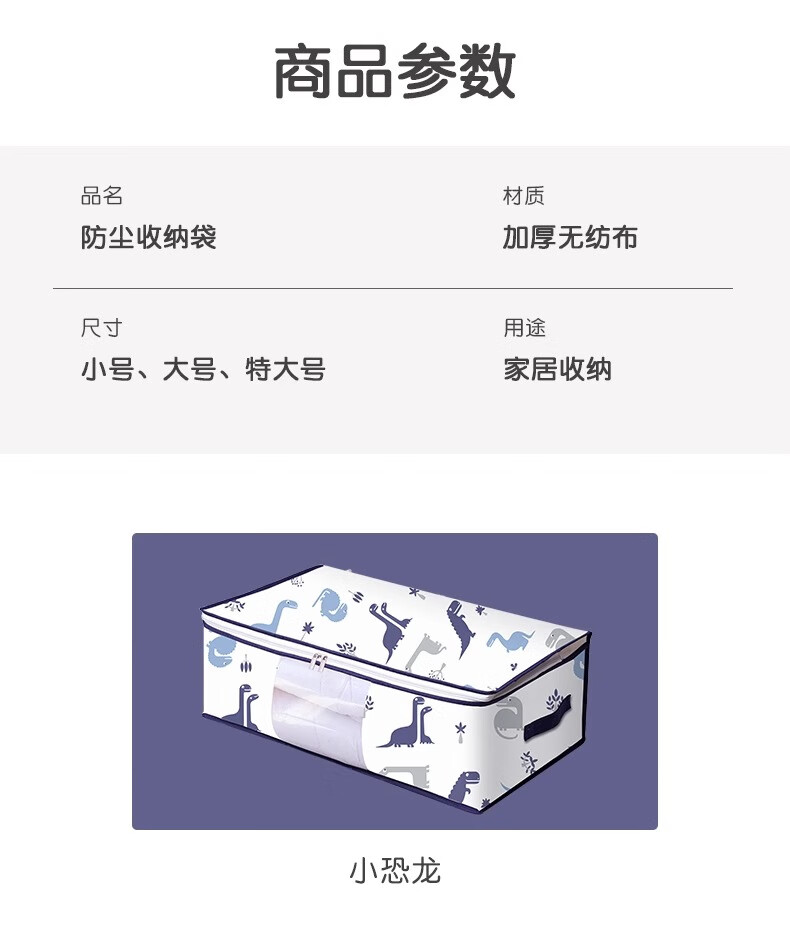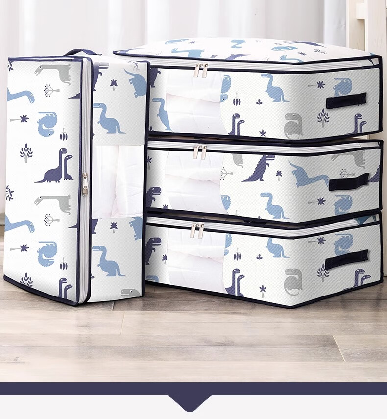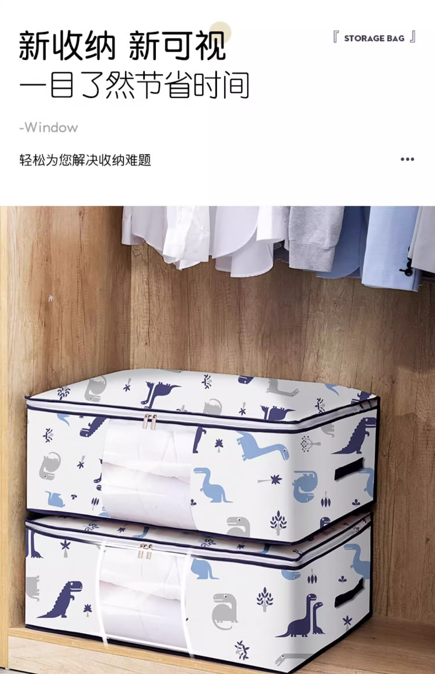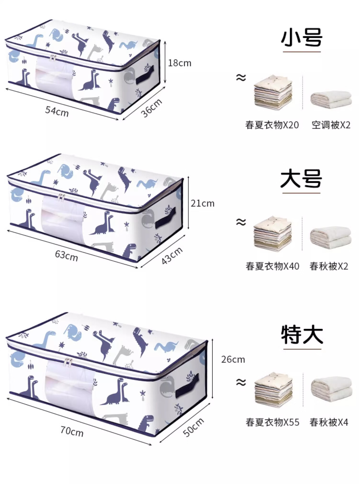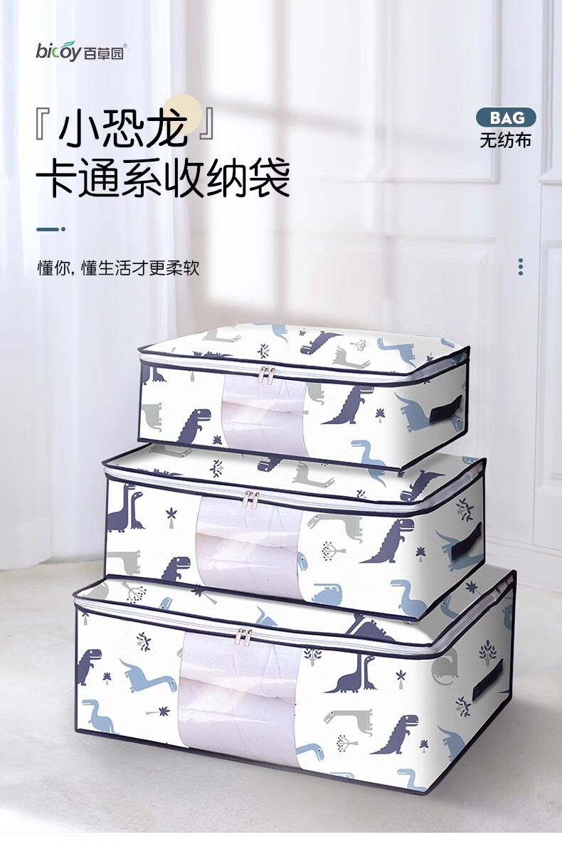 百草园被子收纳袋手提大容量衣服衣物无纺布四件套整理袋家用搬家打包袋 小恐龙【小号4个装】