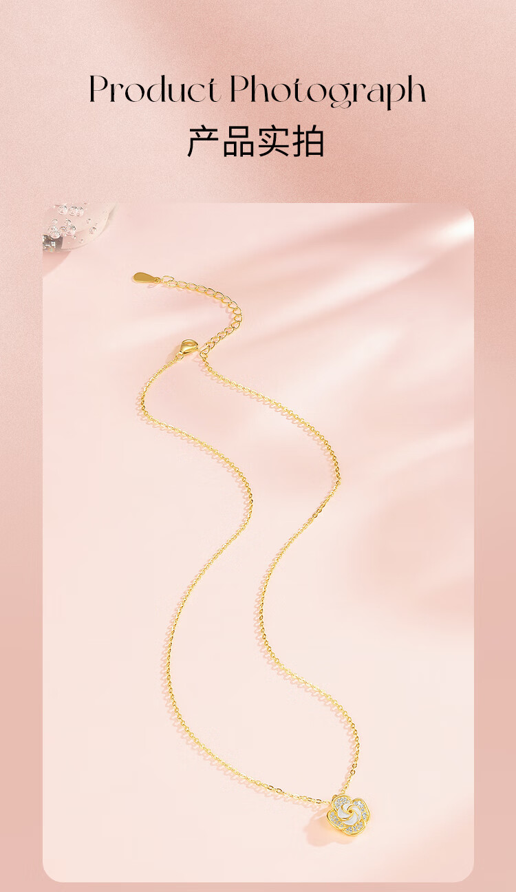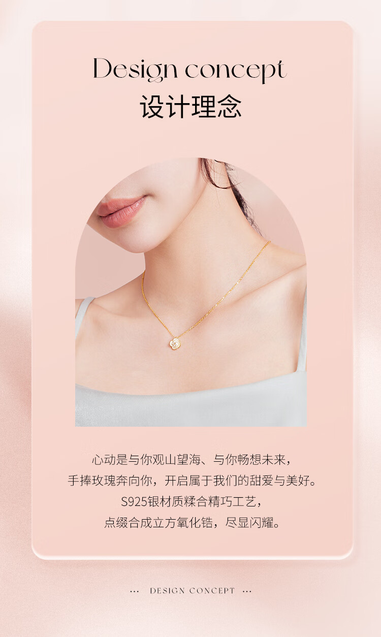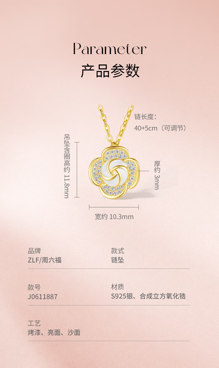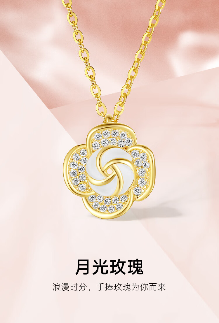 周六福(ZLF)新年礼物 S925银饰项链女玫瑰花吊坠月光小众轻奢链坠送礼 链坠链长40+5cm