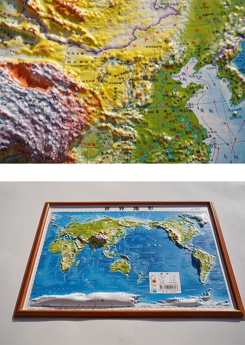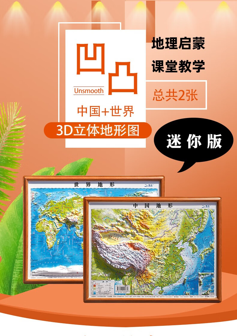 中国地图和世界地图3d立体凹凸版迷你桌面便携式学生专用2024版地理地形图小学生中学生适用三维地势地貌模型 中国地形+世界地形