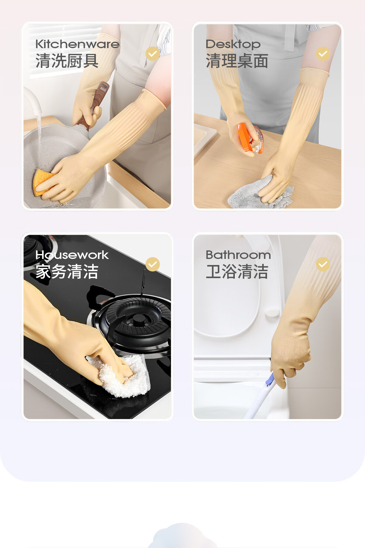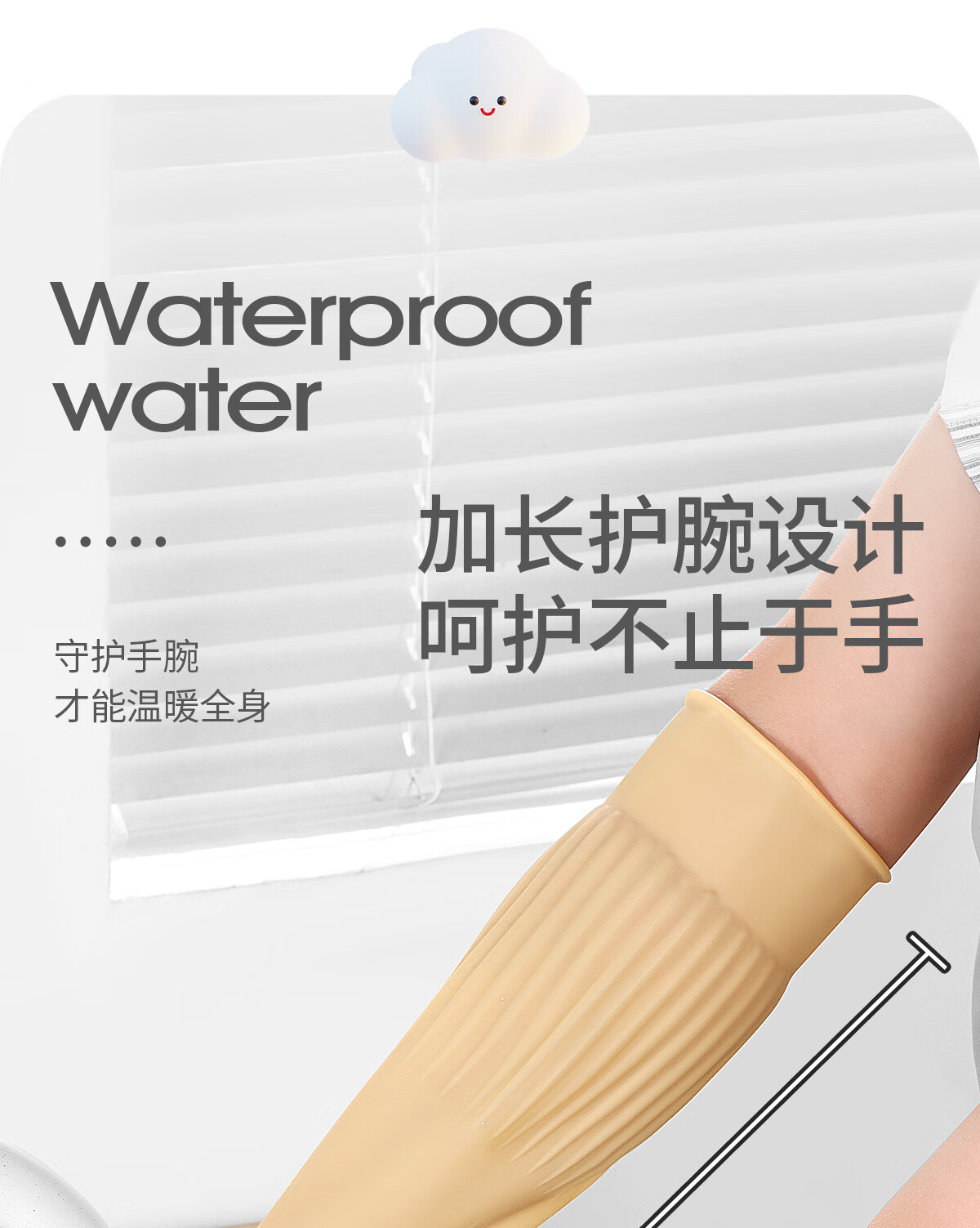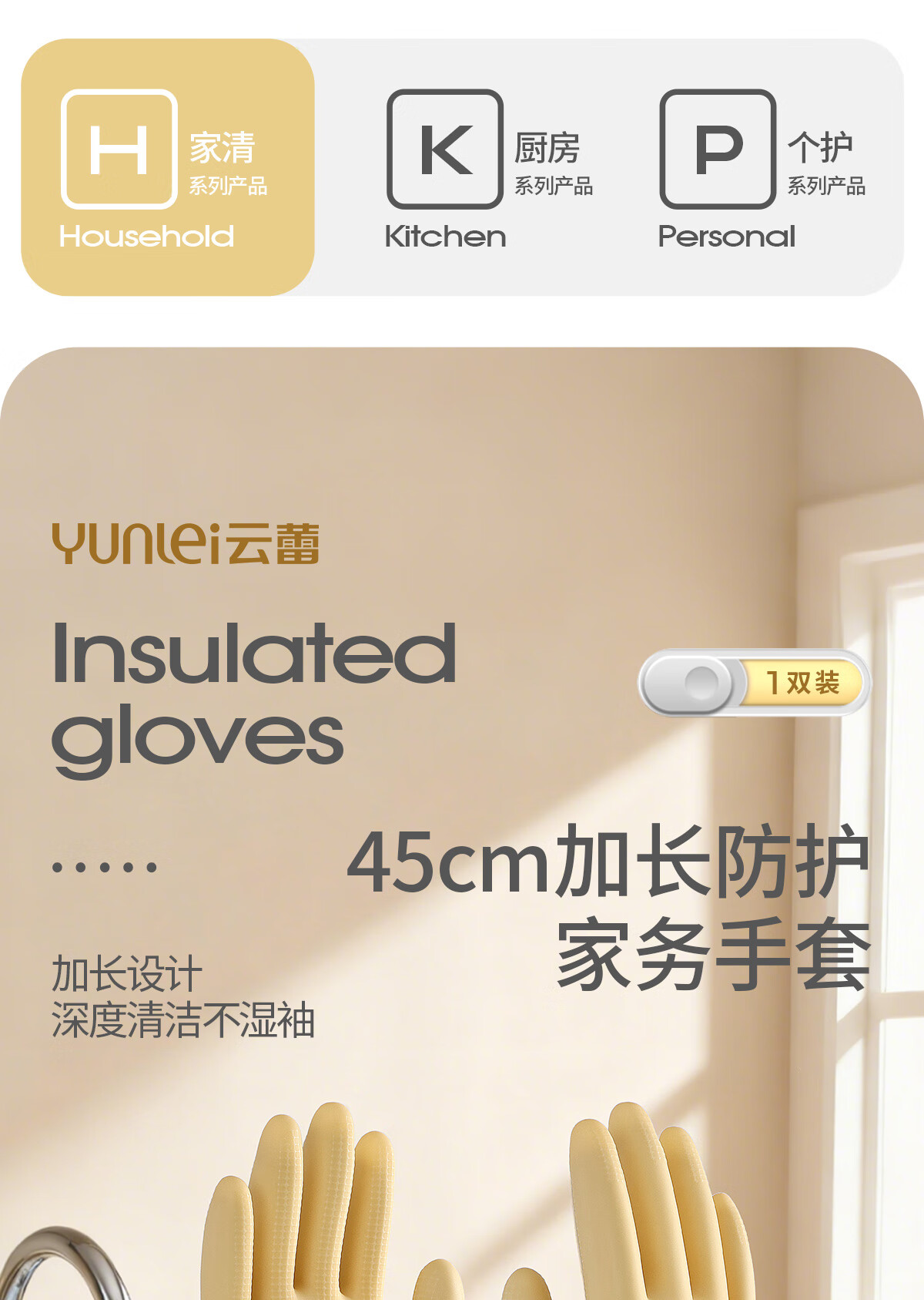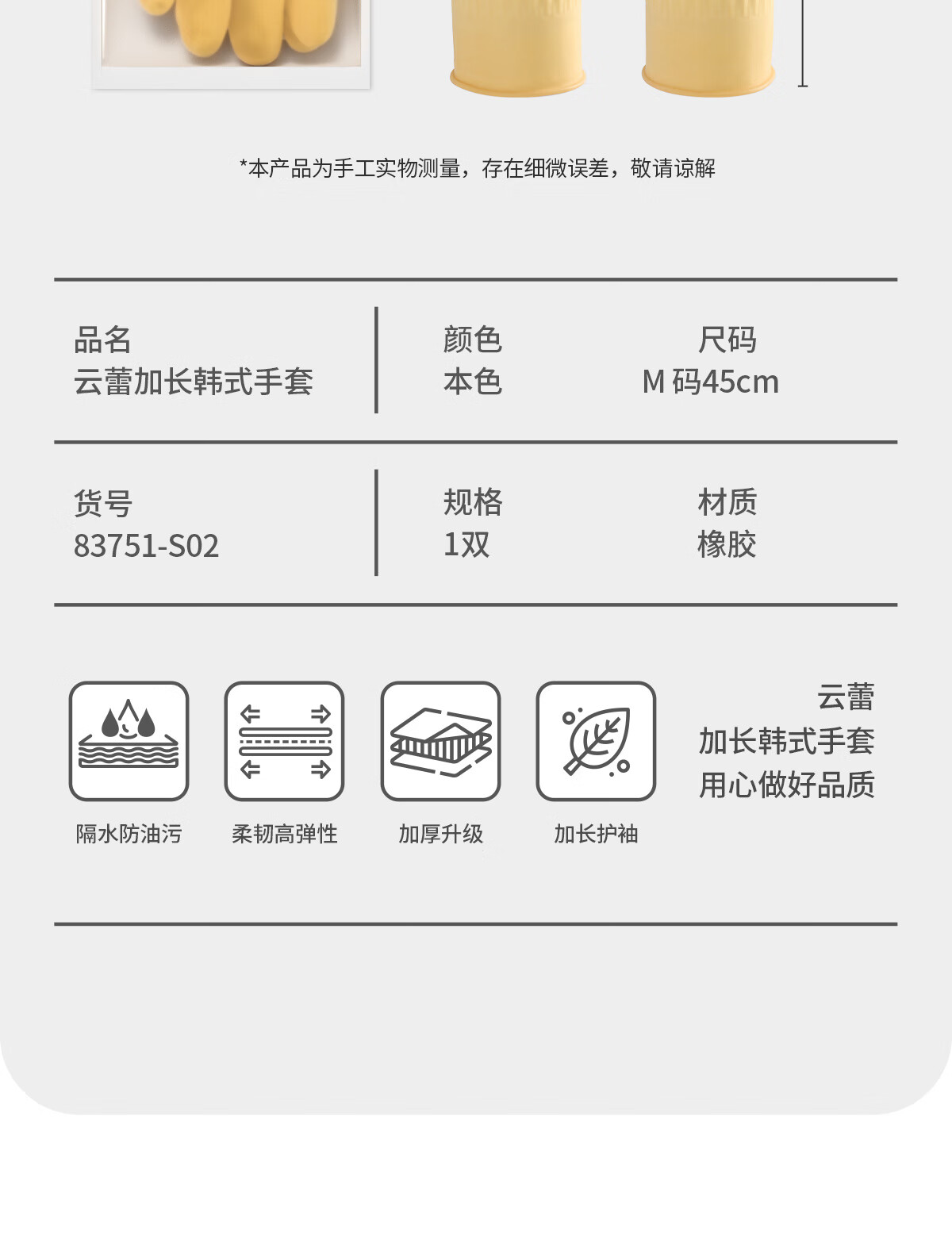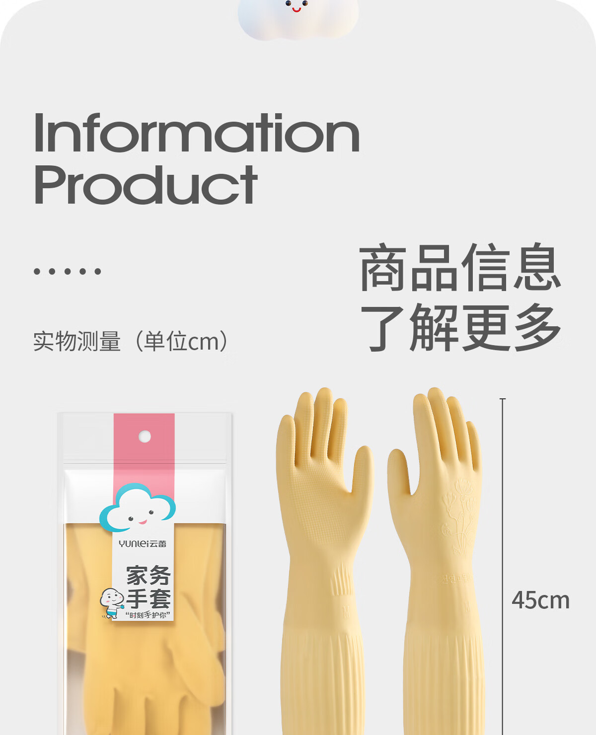 云蕾橡胶韩式手套45cm一双装洗碗家务加长洗衣服厨房清洁耐用加厚手套