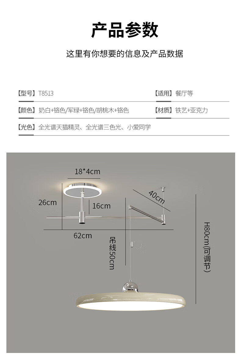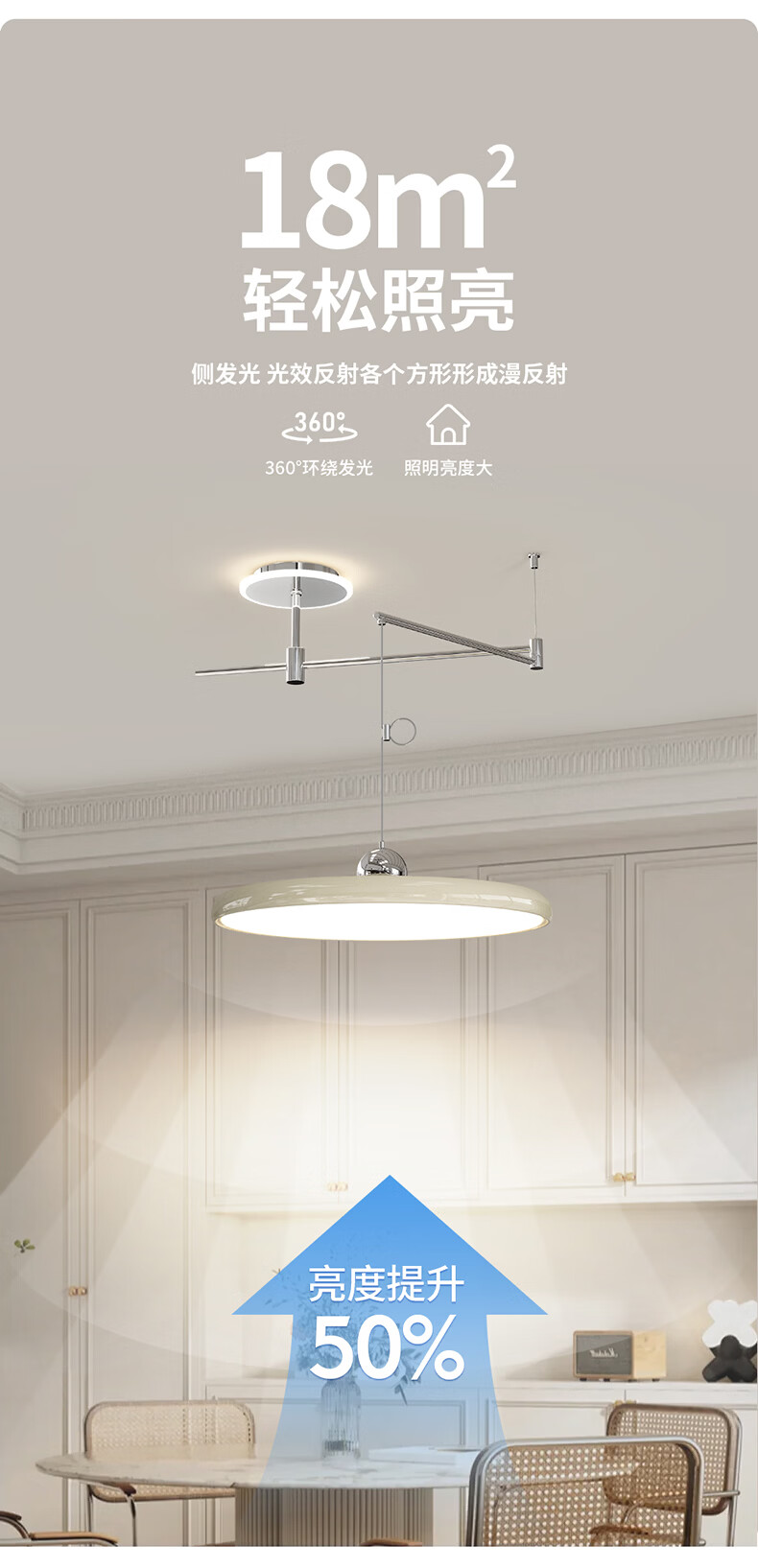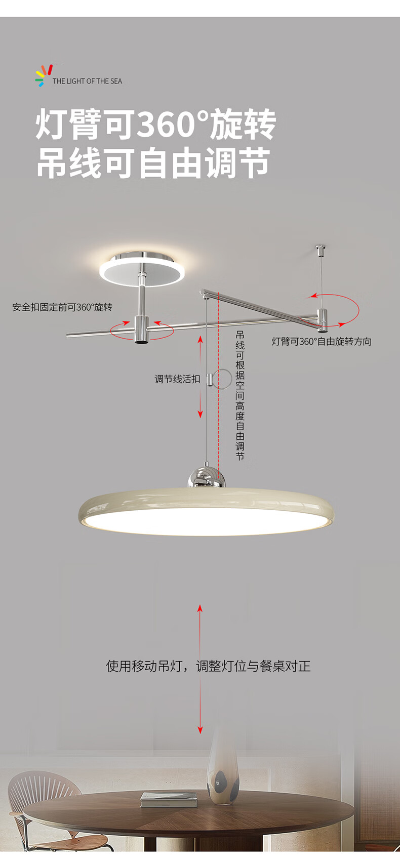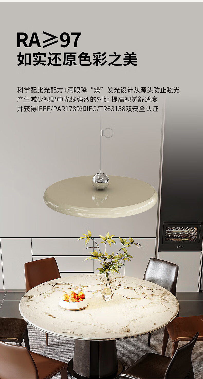 卡伯森意式极简餐厅吊灯设计师款高级感全光谱护眼创意餐桌饭厅吧台吊灯 奶白色-直径30cm【三色变光】