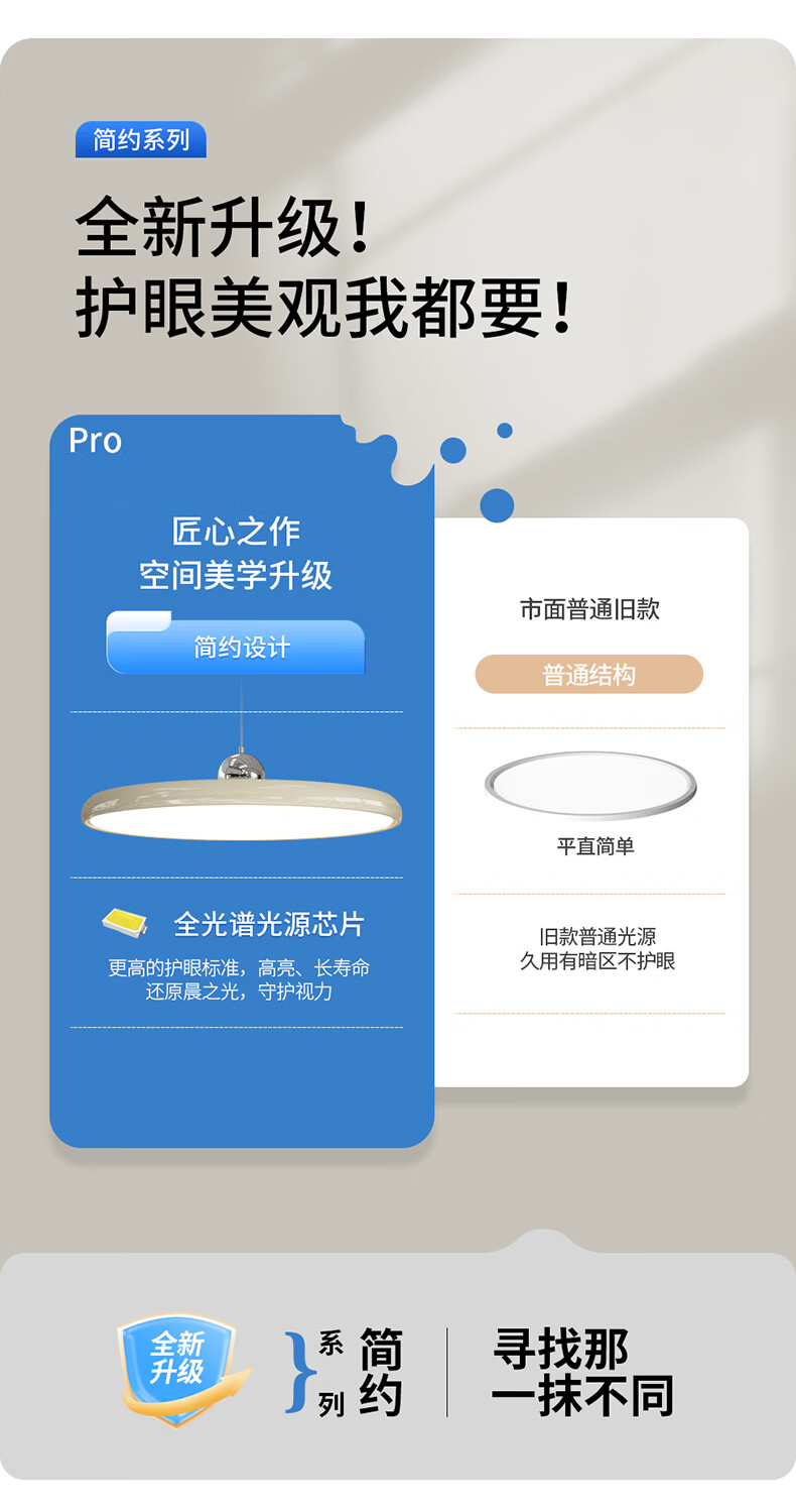 简顿全光谱无缝护眼吸客厅吸顶灯5代pro超薄现代简约包安装