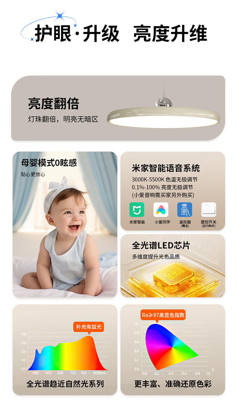 霍尼韦尔(Honeywell)卧室护眼吸顶灯儿童房学习灯智能版LED全光谱灯02BPro【包安装】
