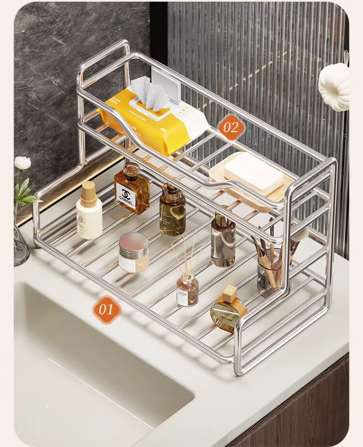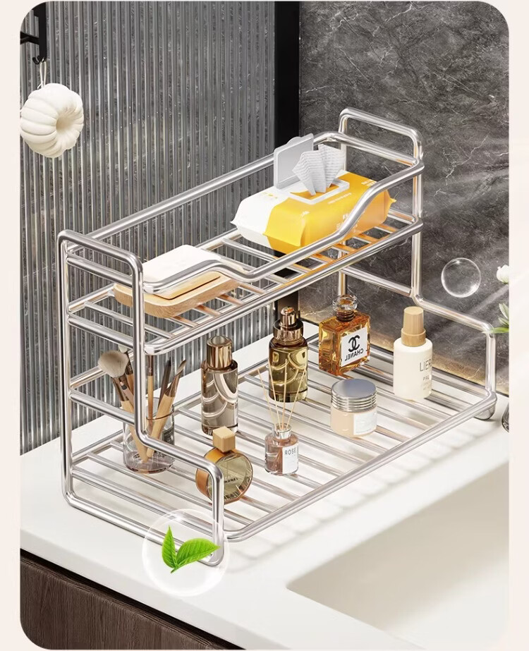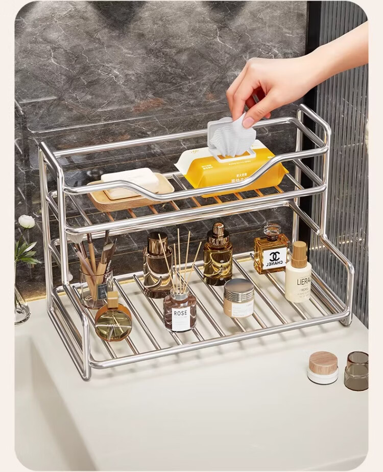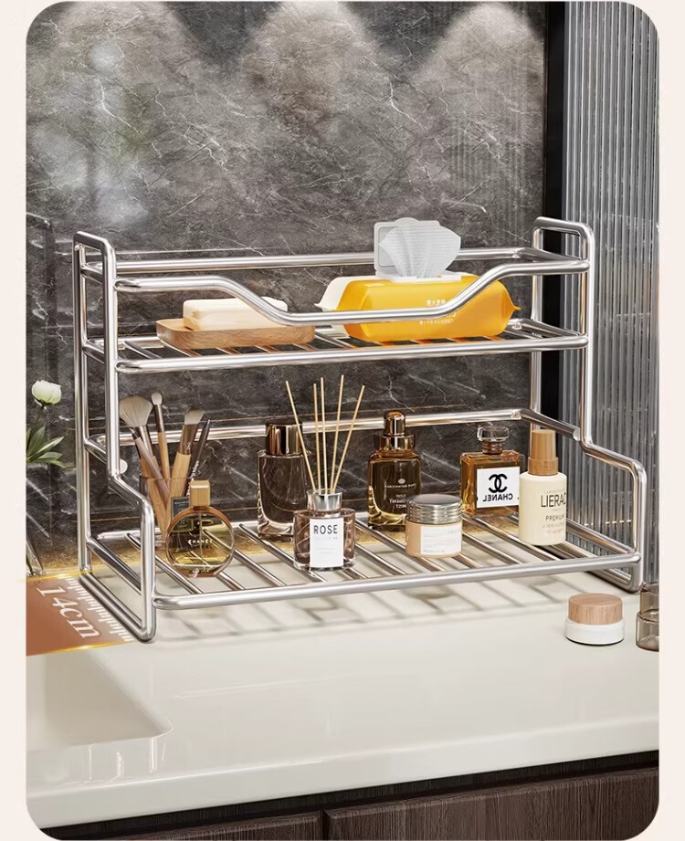 尔思家浴室置物架卫生间化妆品收纳架洗手池台面多功能墙角架高档最新款 双层置物架