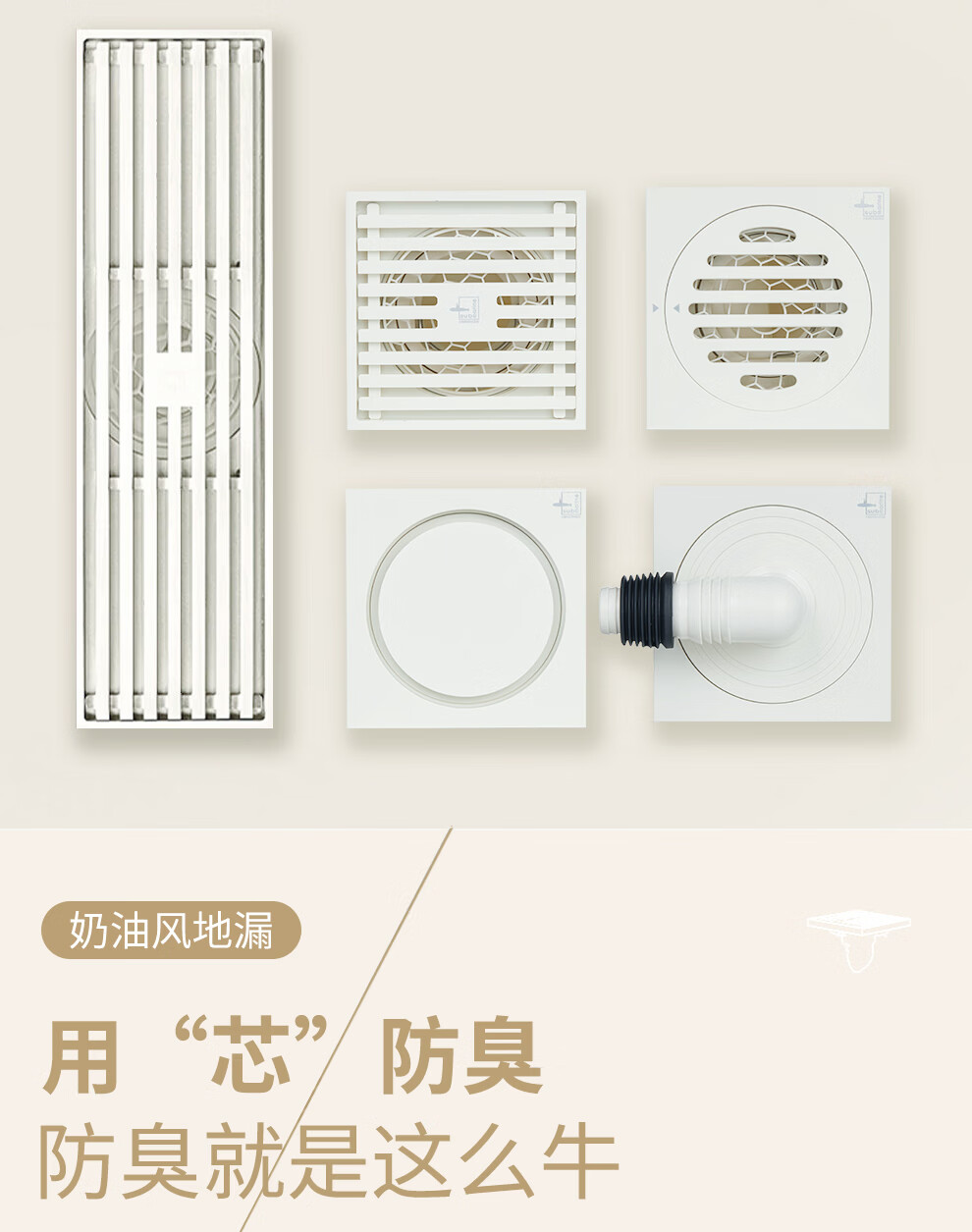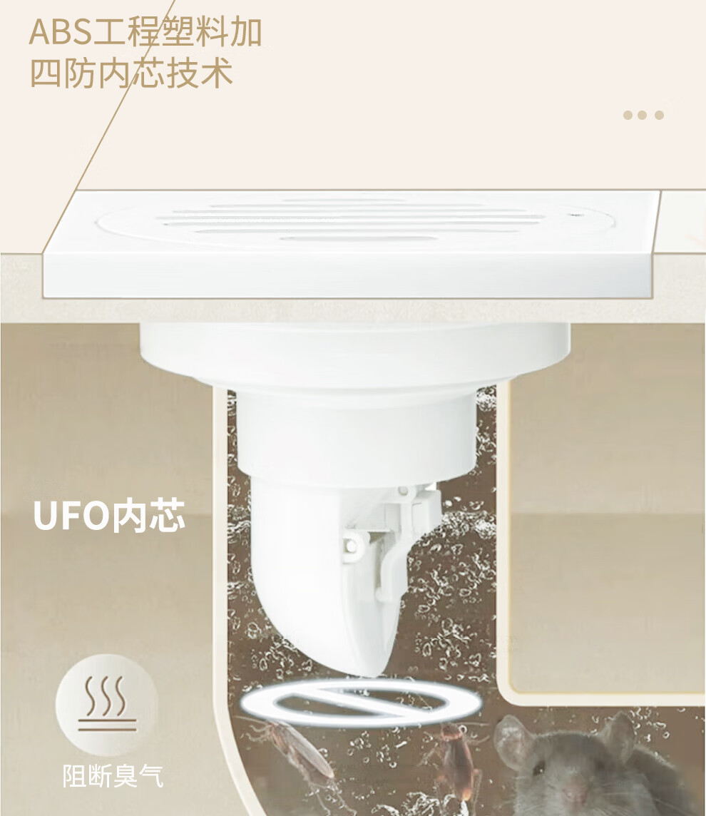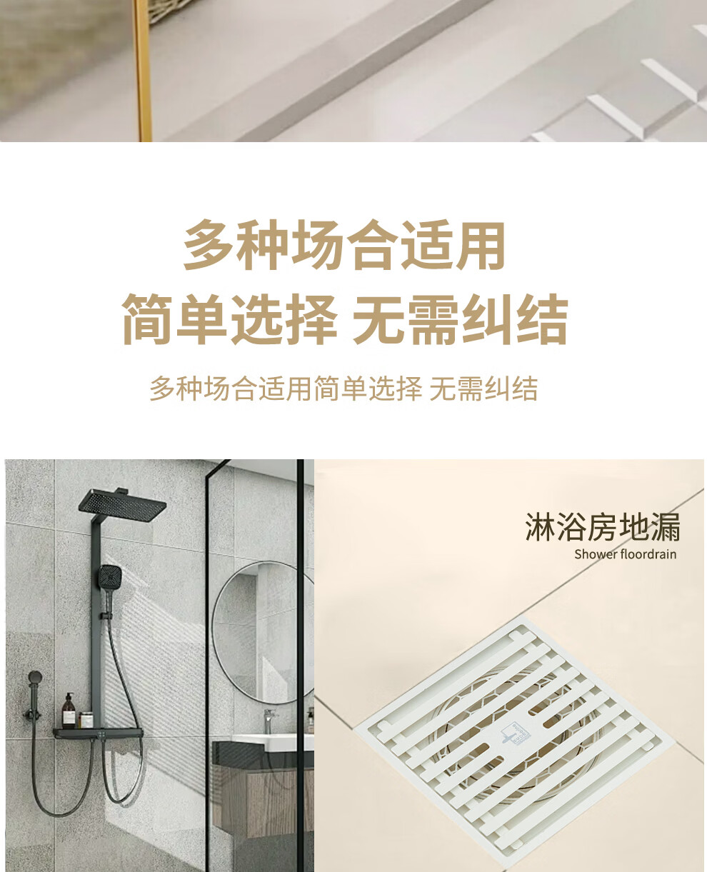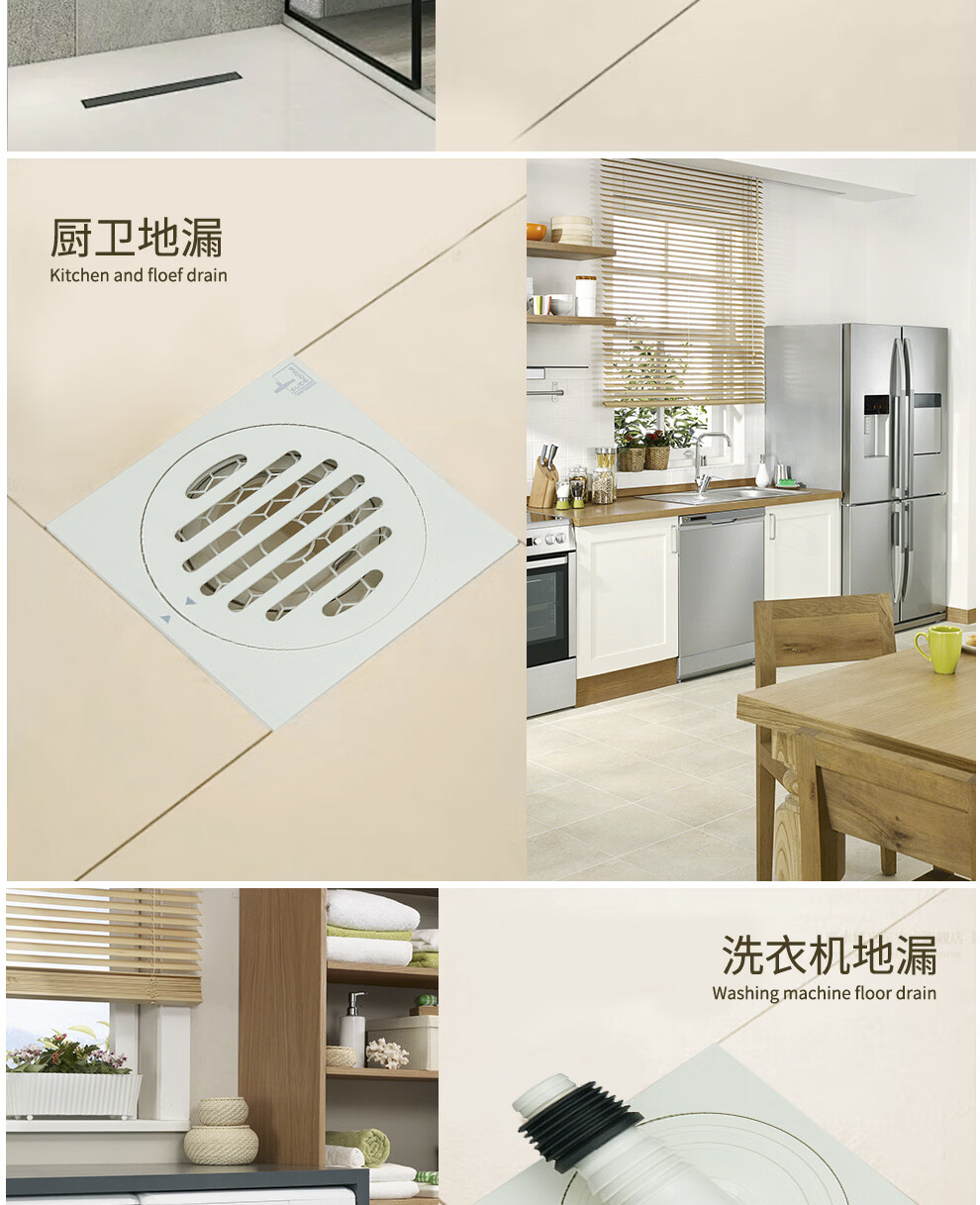 潜水艇不锈钢地漏奶油风防臭防虫卫生间淋浴厨阳台洗衣机铜地漏简约白 WTF50-10干湿区通用地漏