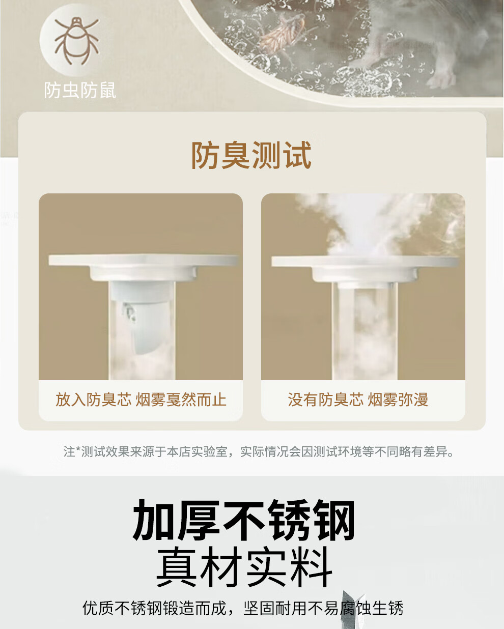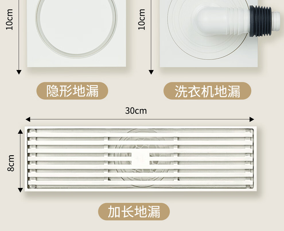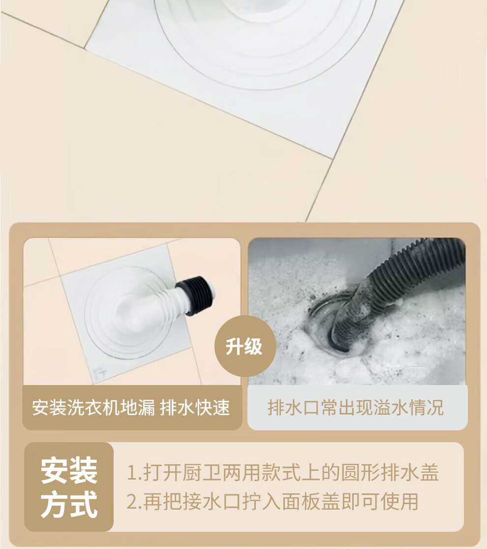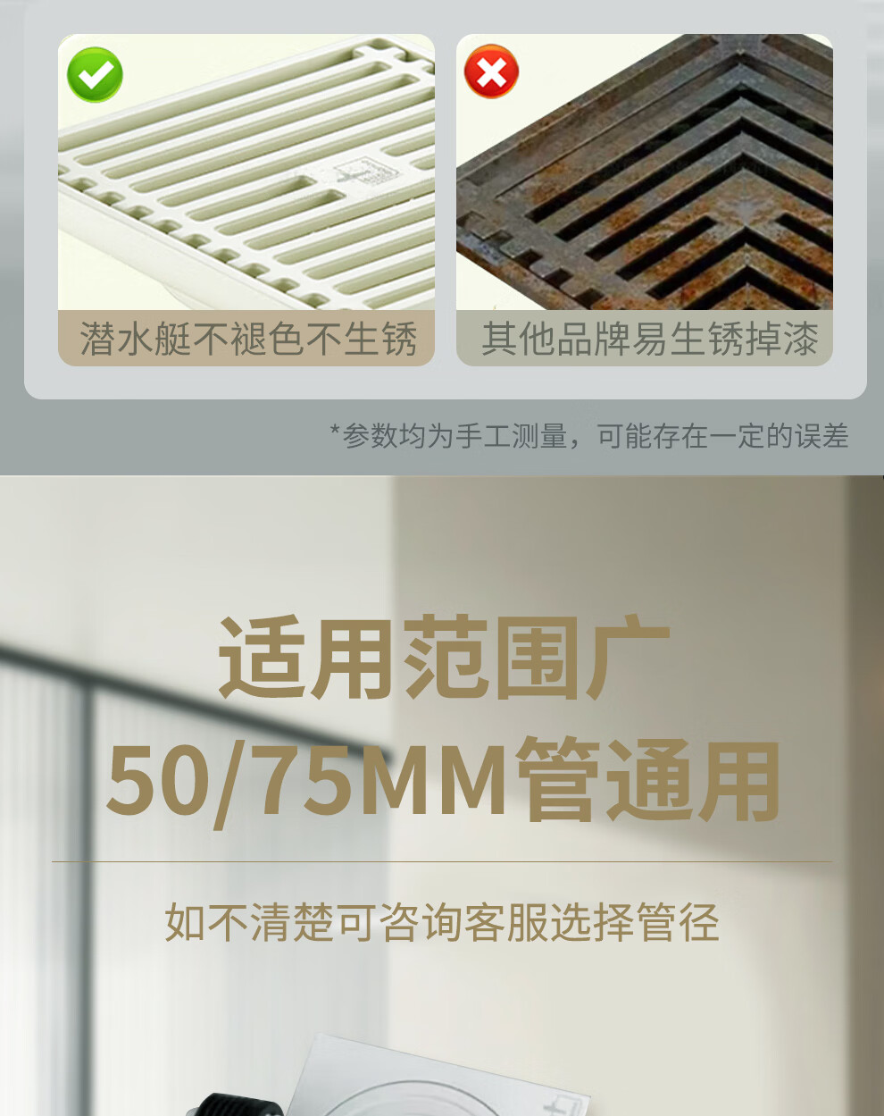 潜水艇不锈钢地漏奶油风防臭防虫卫生间淋浴厨阳台洗衣机铜地漏简约白 WTF50-10干湿区通用地漏