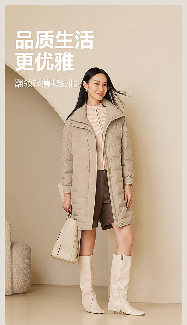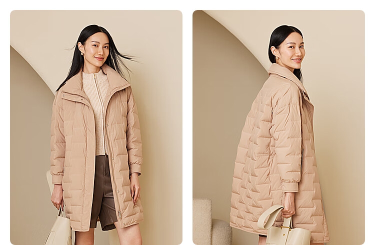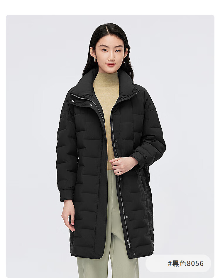波司登(BOSIDENG)【断码清仓】轻薄鹅绒羽绒服女中长款90绒收腰通勤保暖翻领外套 【店长推荐】黑色8056 M 165/88A