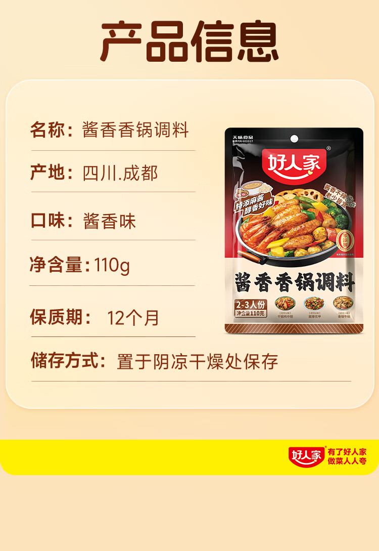 好人家 酱香香锅调料 干锅一料多用调味品110g