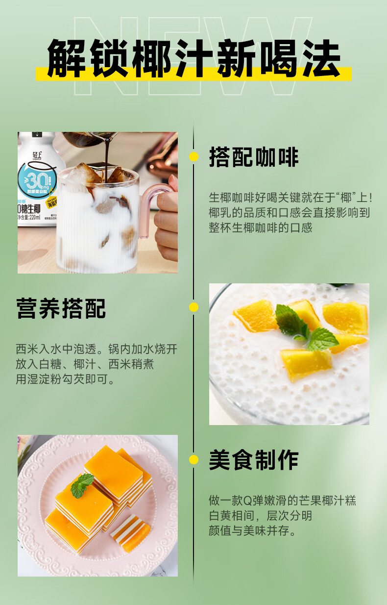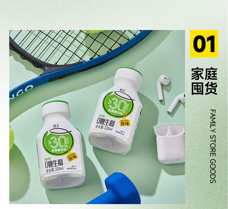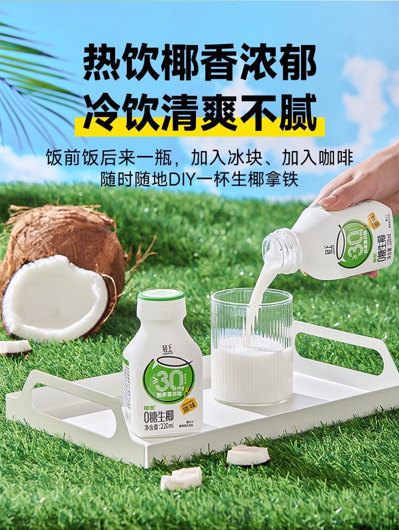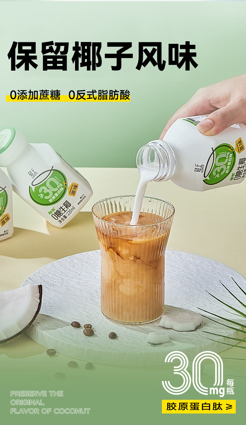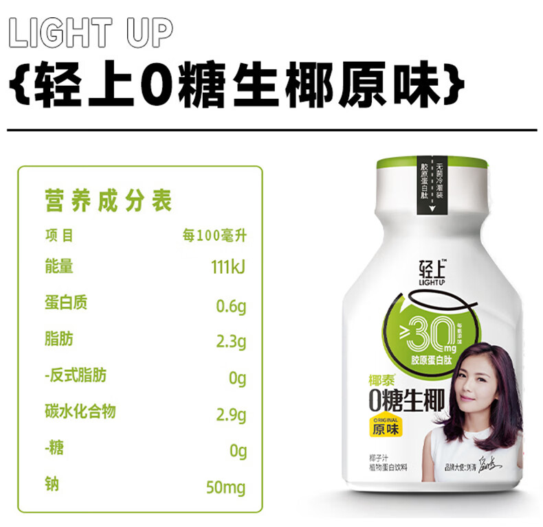 轻上【免费试喝】生椰汁添加胶原蛋白肽0糖饮料椰奶椰子汁植物蛋白饮 100%椰子水245ml*6瓶