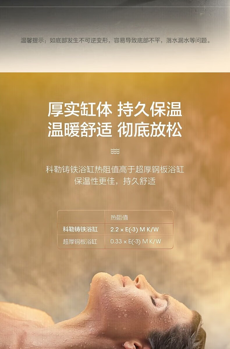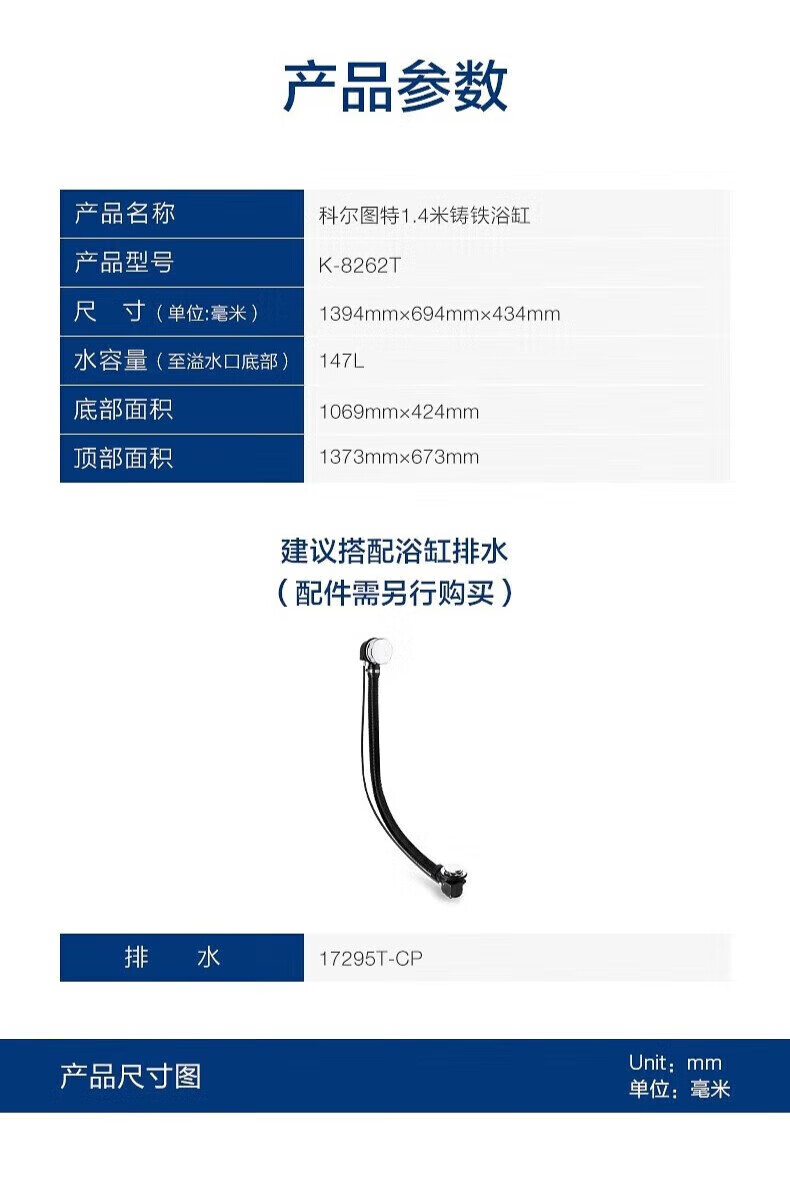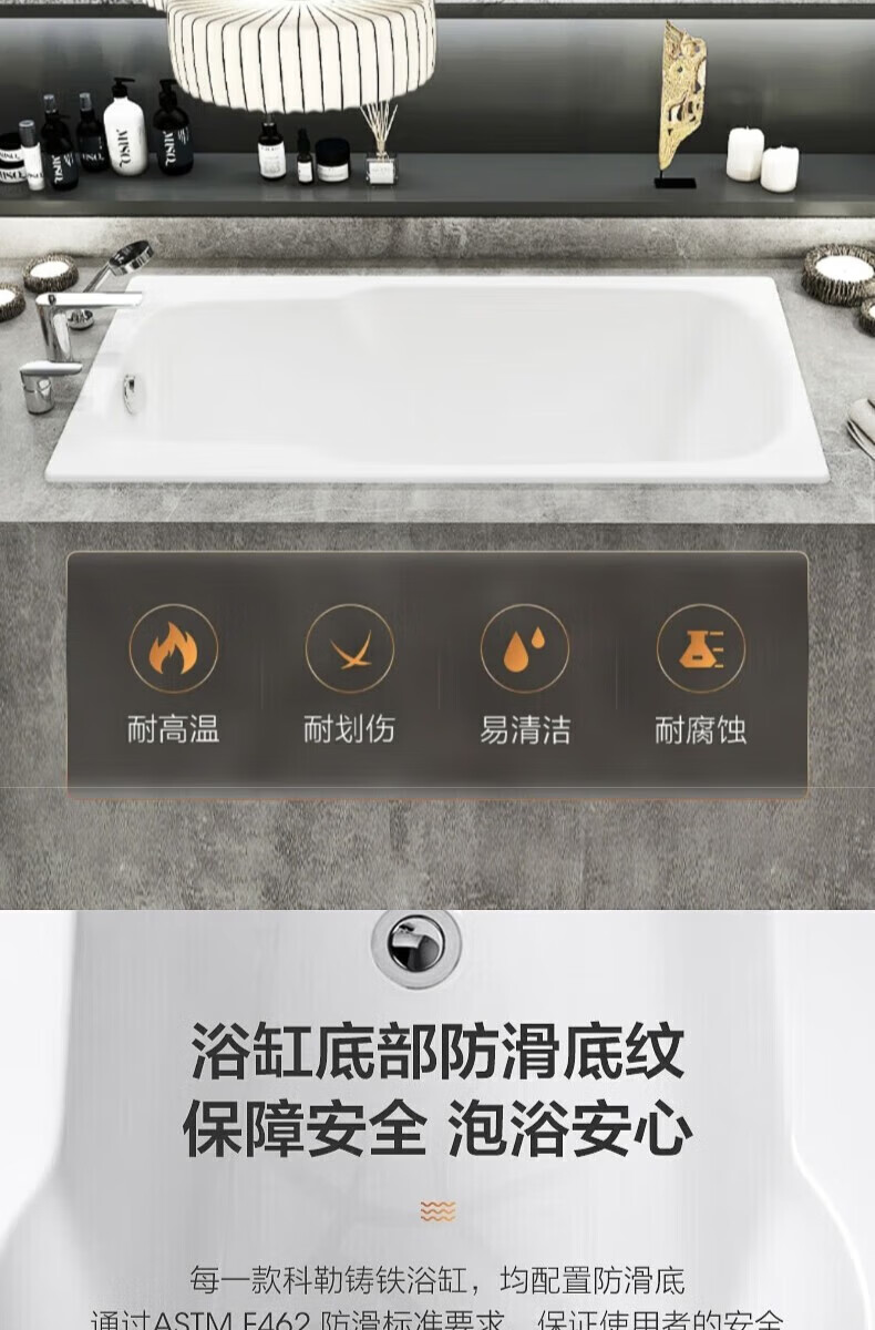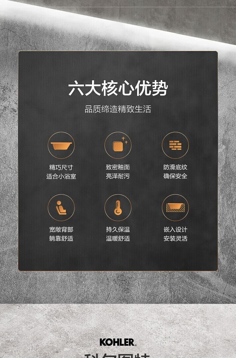 科勒(KOHLER)浴缸嵌入式家用成人浴缸科尔图特小户型1.4米铸铁浴缸 K-8262T-0