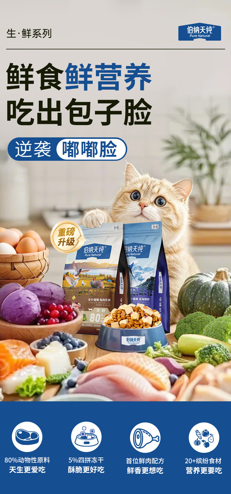 伯纳天纯生鲜冻干猫粮成猫幼猫全阶段通用牛肉羊肉兔肉高蛋白营养 【常规款】牛肉鸡肉味 5.5kg