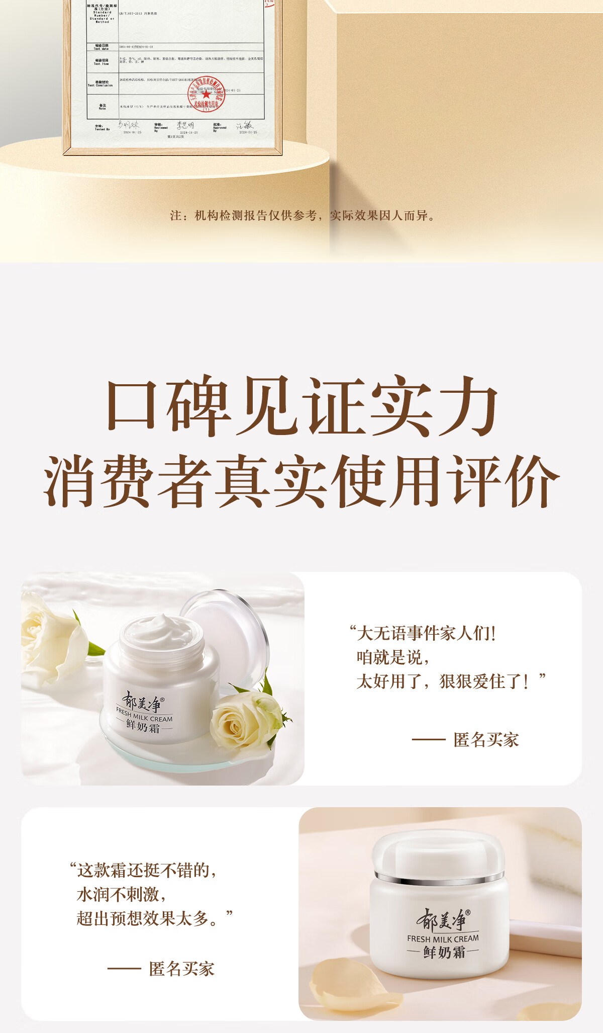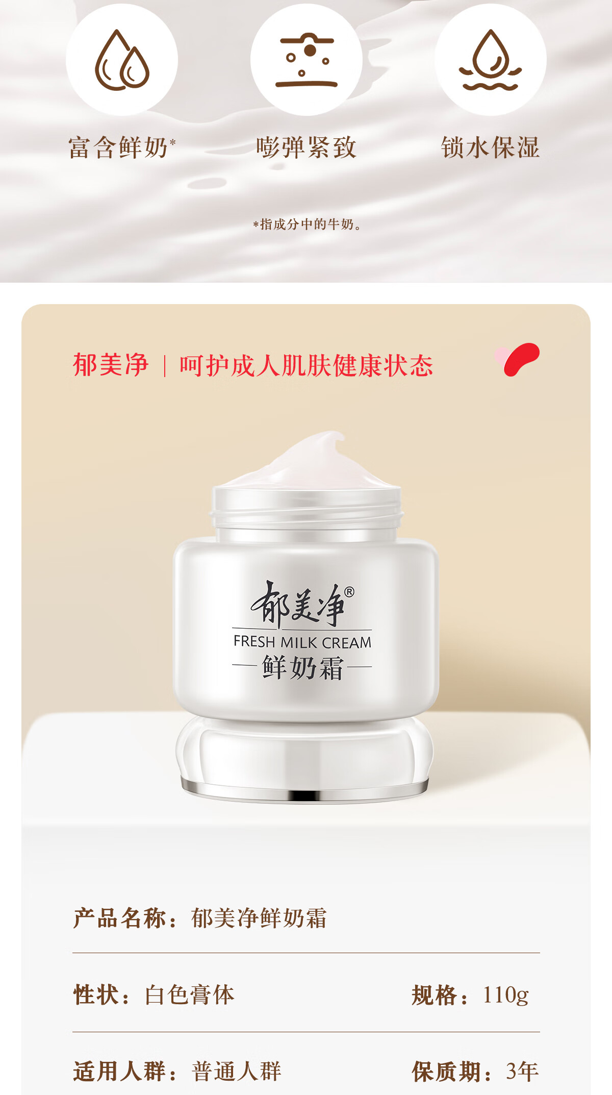 郁美净鲜奶霜110g补水滋润保湿面霜鲜奶精华润肤霜乳液新年礼物