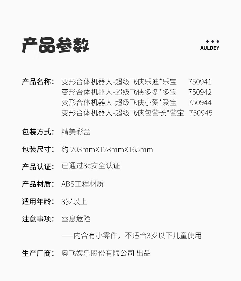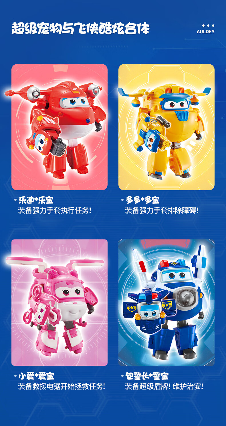 奥迪双钻超级飞侠大团圆超级变形机甲机器人乐迪乐宝儿童玩具新年礼物 变形合体机器人-包警长X警宝