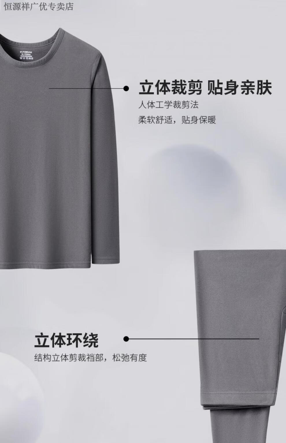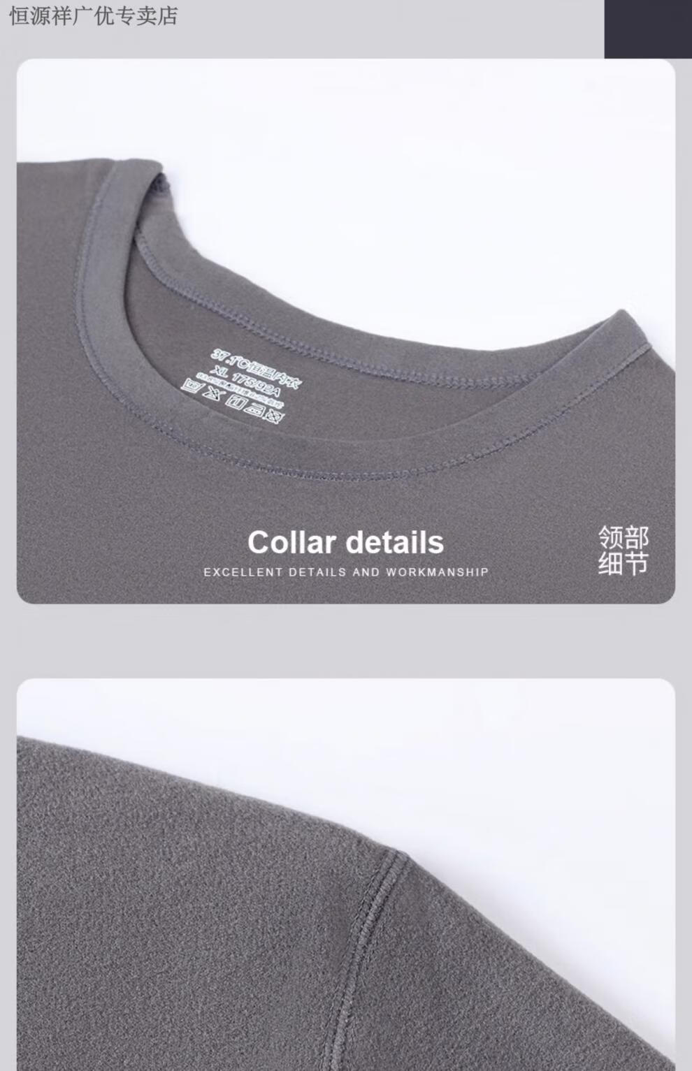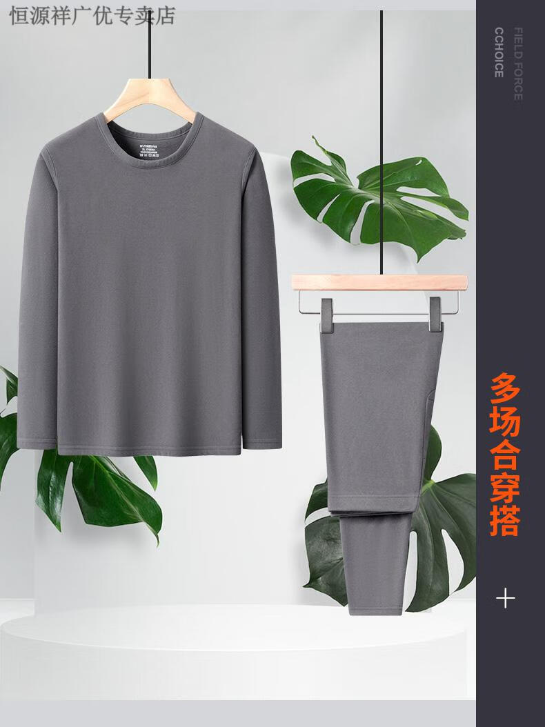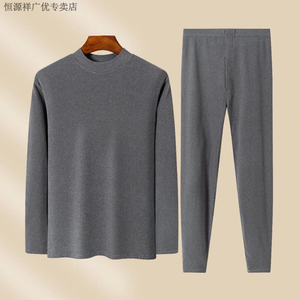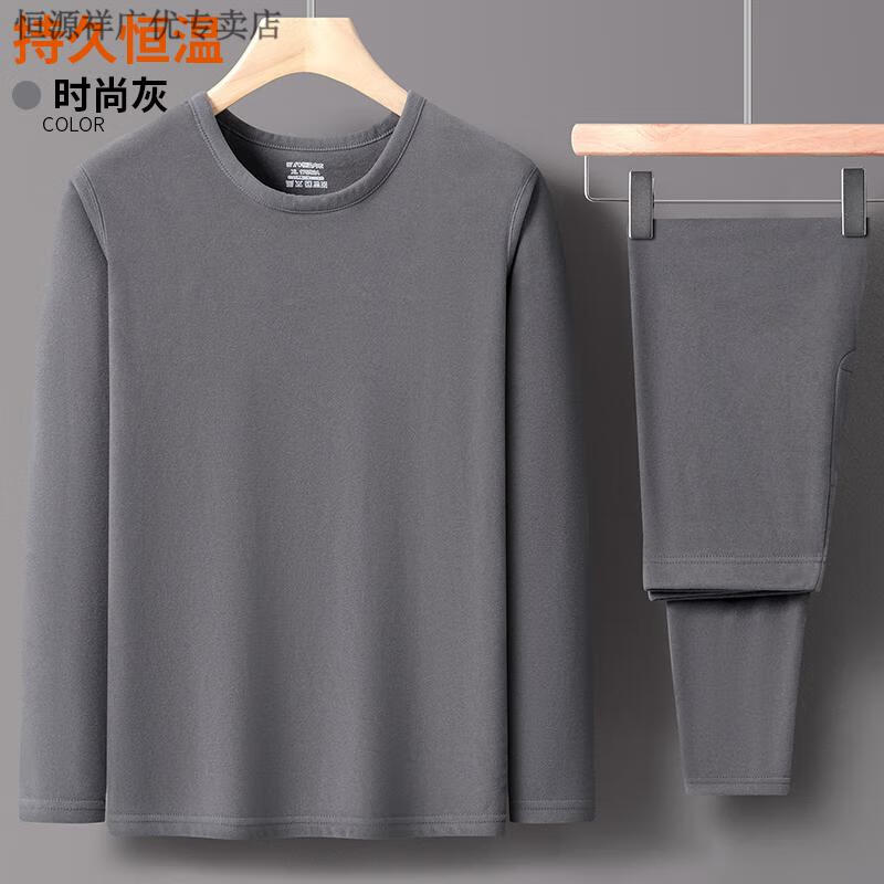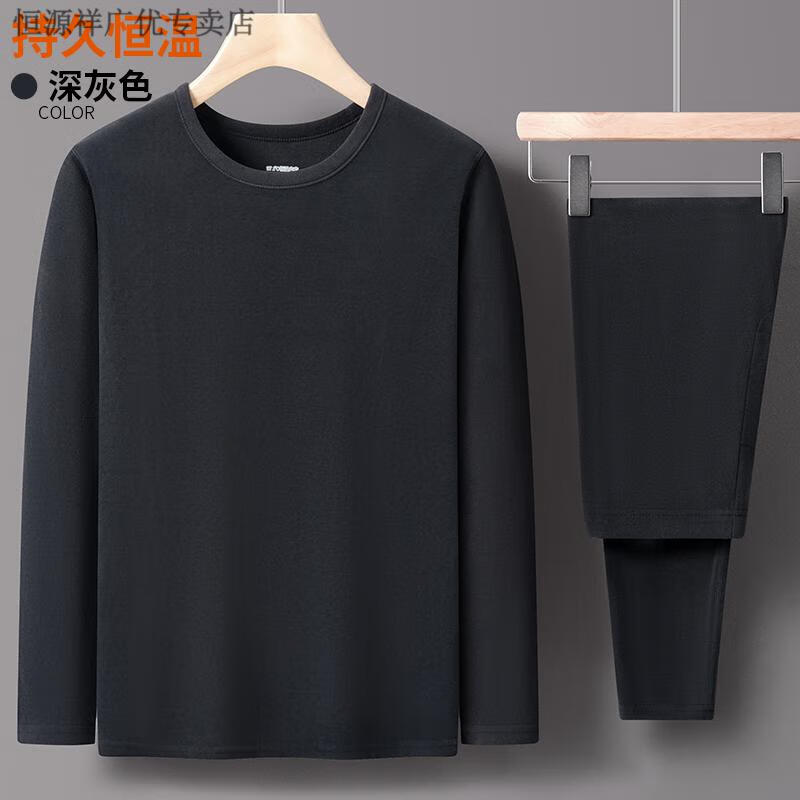 恒源祥男士德绒保暖内衣套装秋冬款秋衣秋裤薄款圆领打底套装男 深灰-圆领 8XL (建议250-280斤)