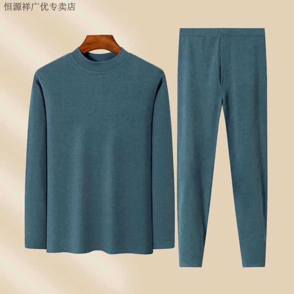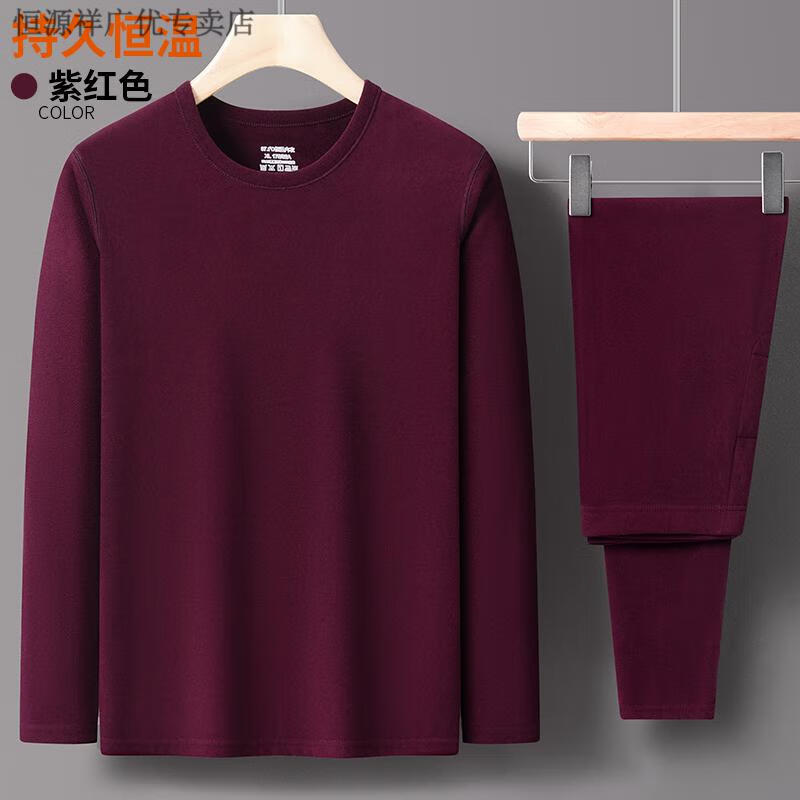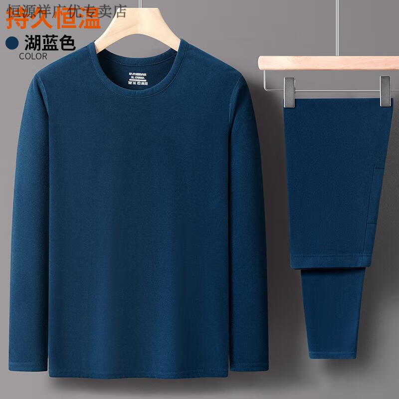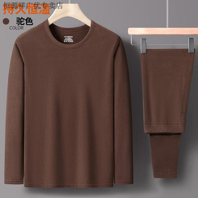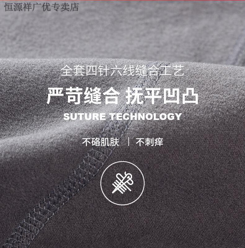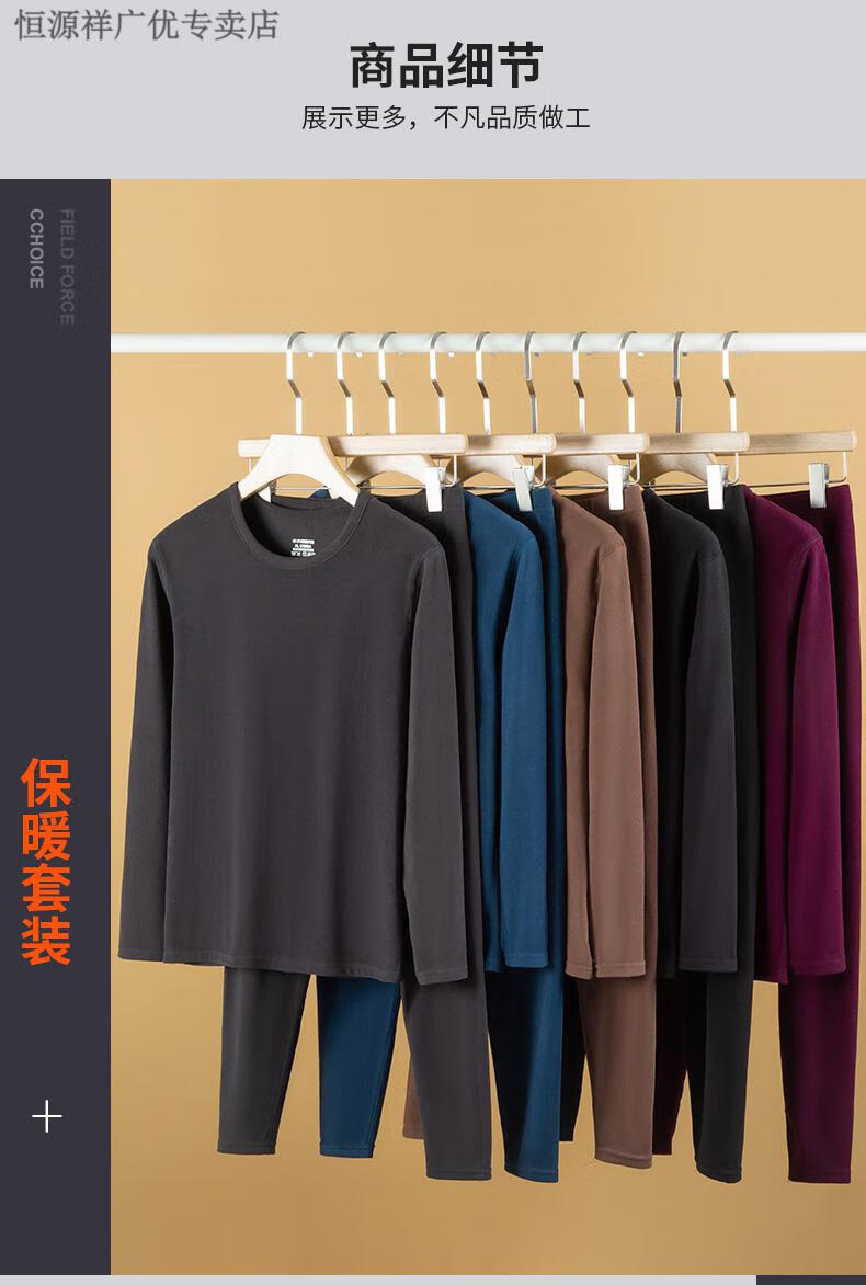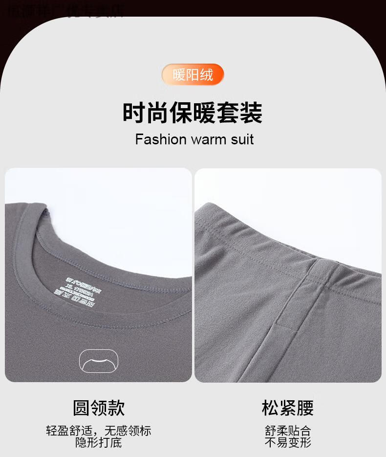 恒源祥男士德绒保暖内衣套装秋冬款秋衣秋裤薄款圆领打底套装男 深灰-圆领 8XL (建议250-280斤)
