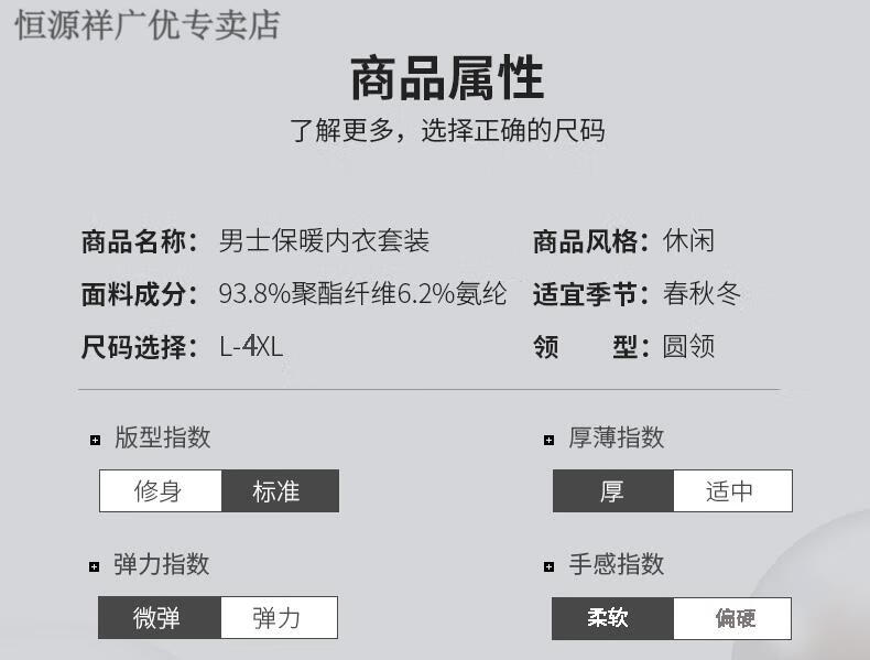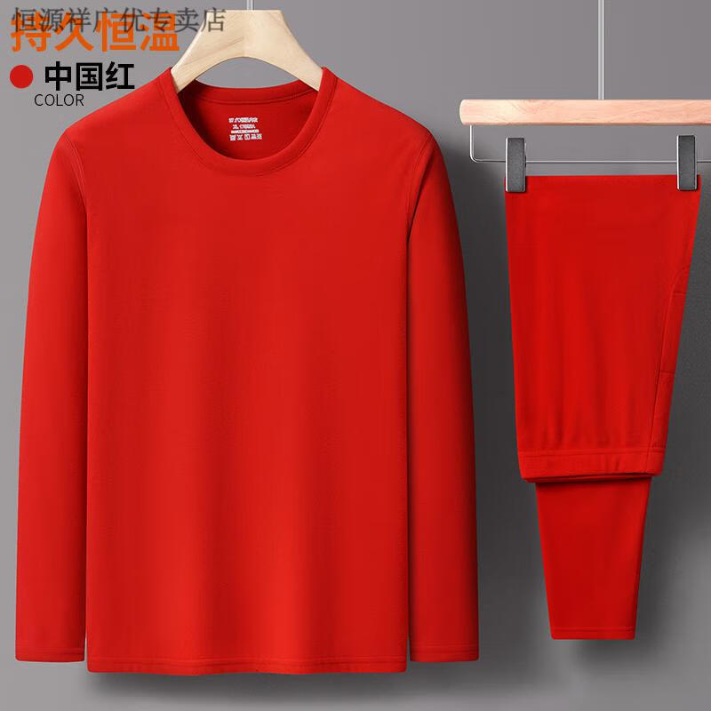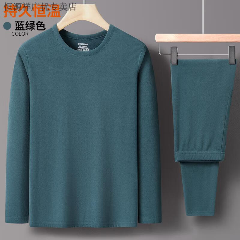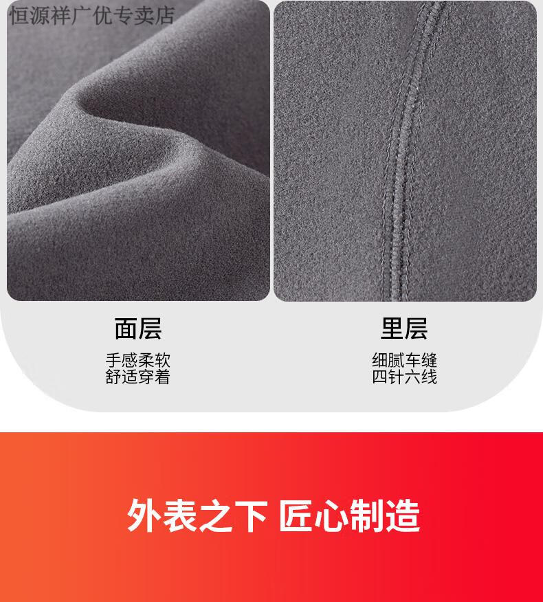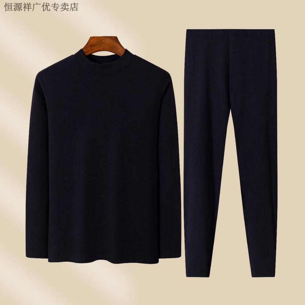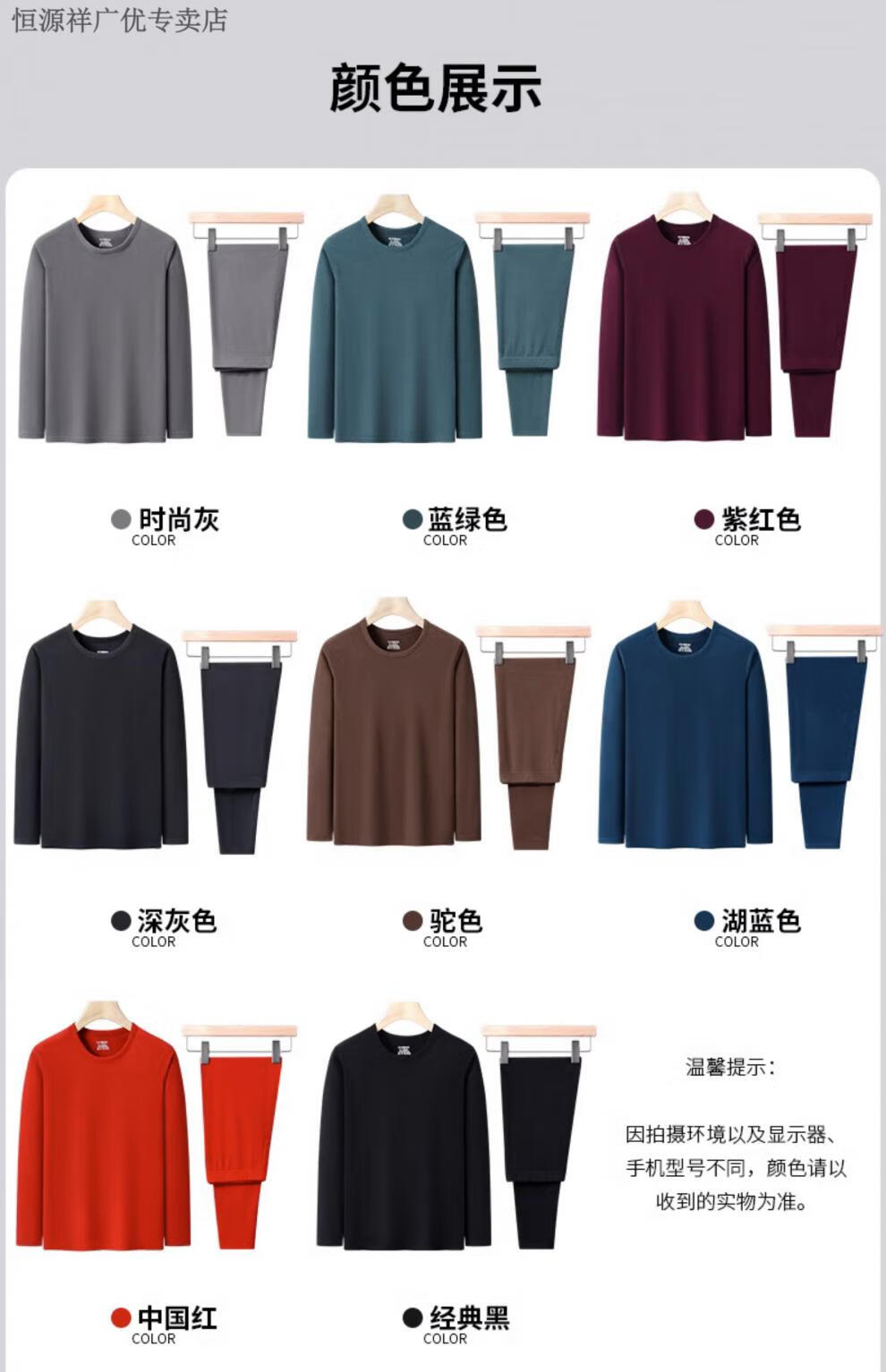 恒源祥男士德绒保暖内衣套装秋冬款秋衣秋裤薄款圆领打底套装男 深灰-圆领 8XL (建议250-280斤)