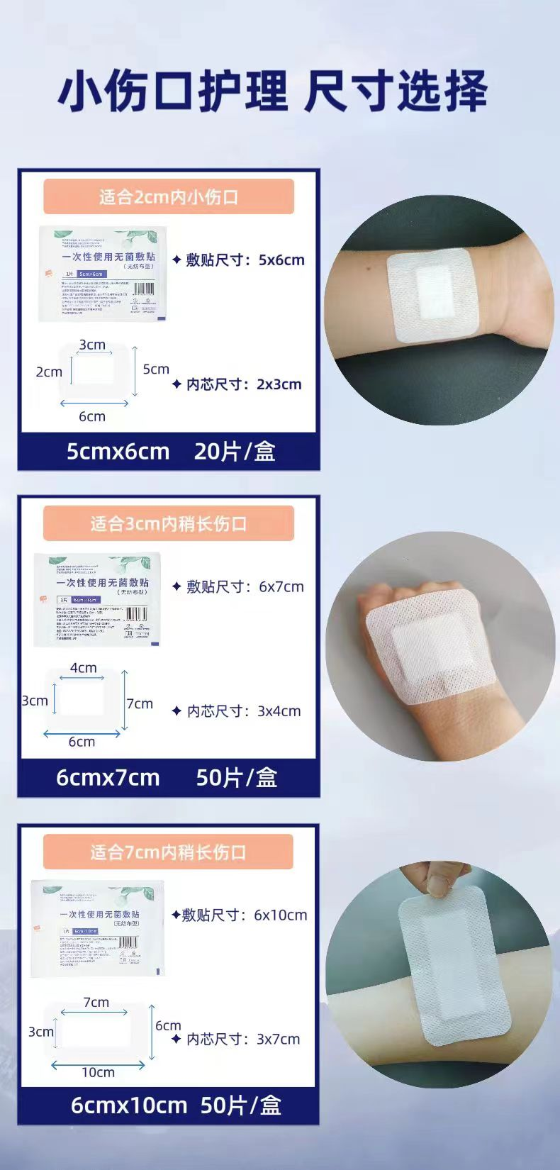 菩乐家无菌敷贴小号医用透气创口贴手术纱布伤口敷料大号止血创可贴 无菌敷贴6*10cm(20片/盒)