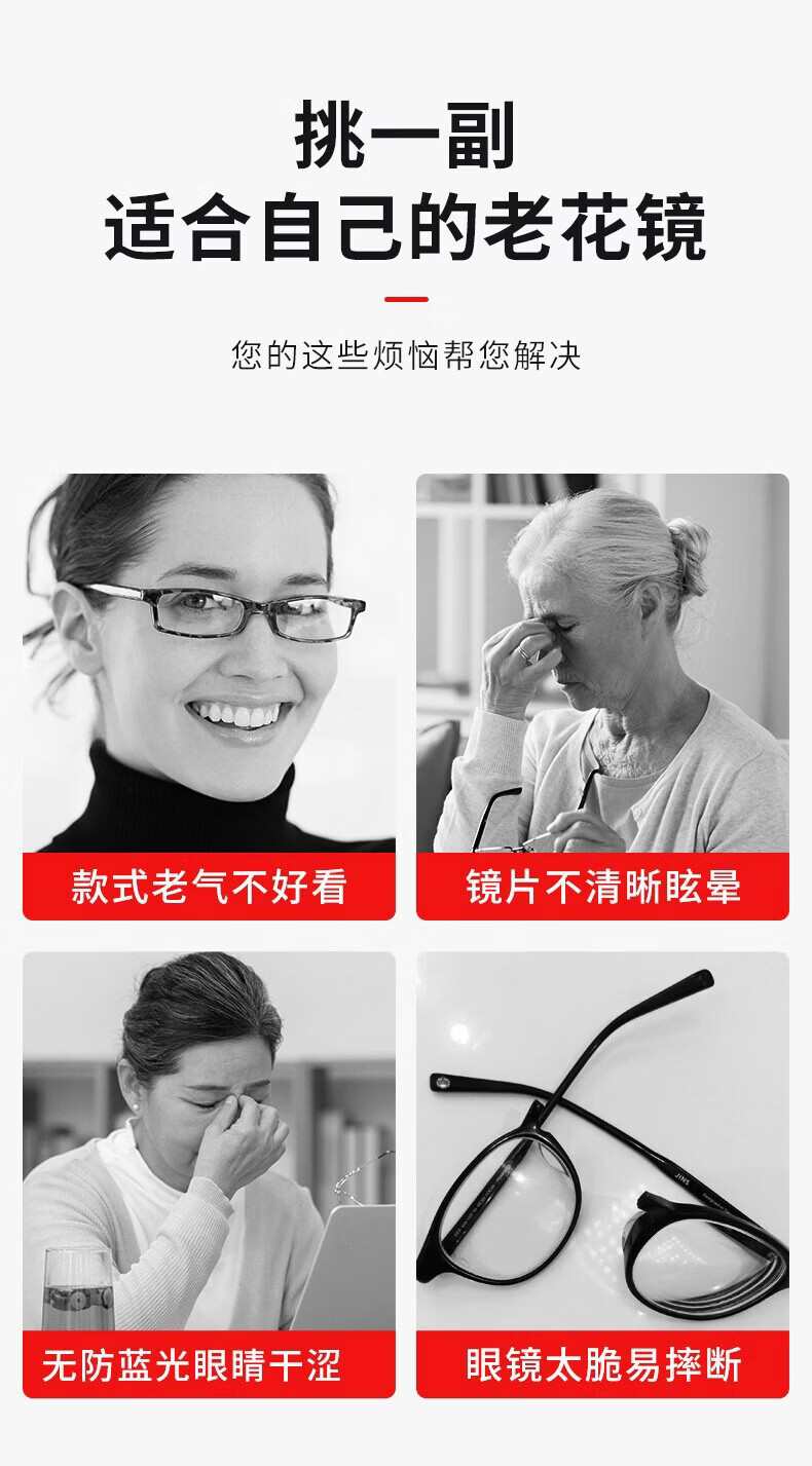 CHONGMO蒋大为超视力远近一体镜智能老花镜自动调节度数变焦远近两用护理 400度【建议年龄75岁以上】 金框-多焦点