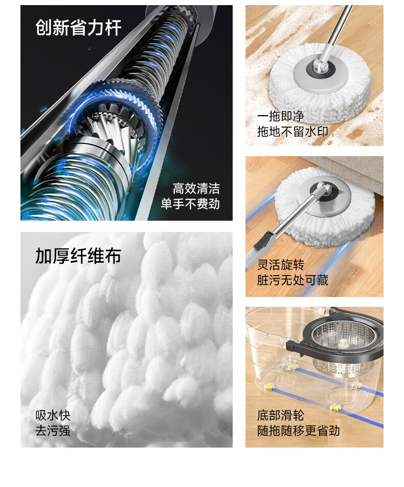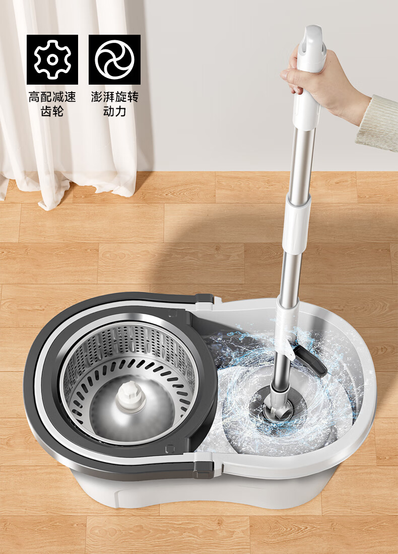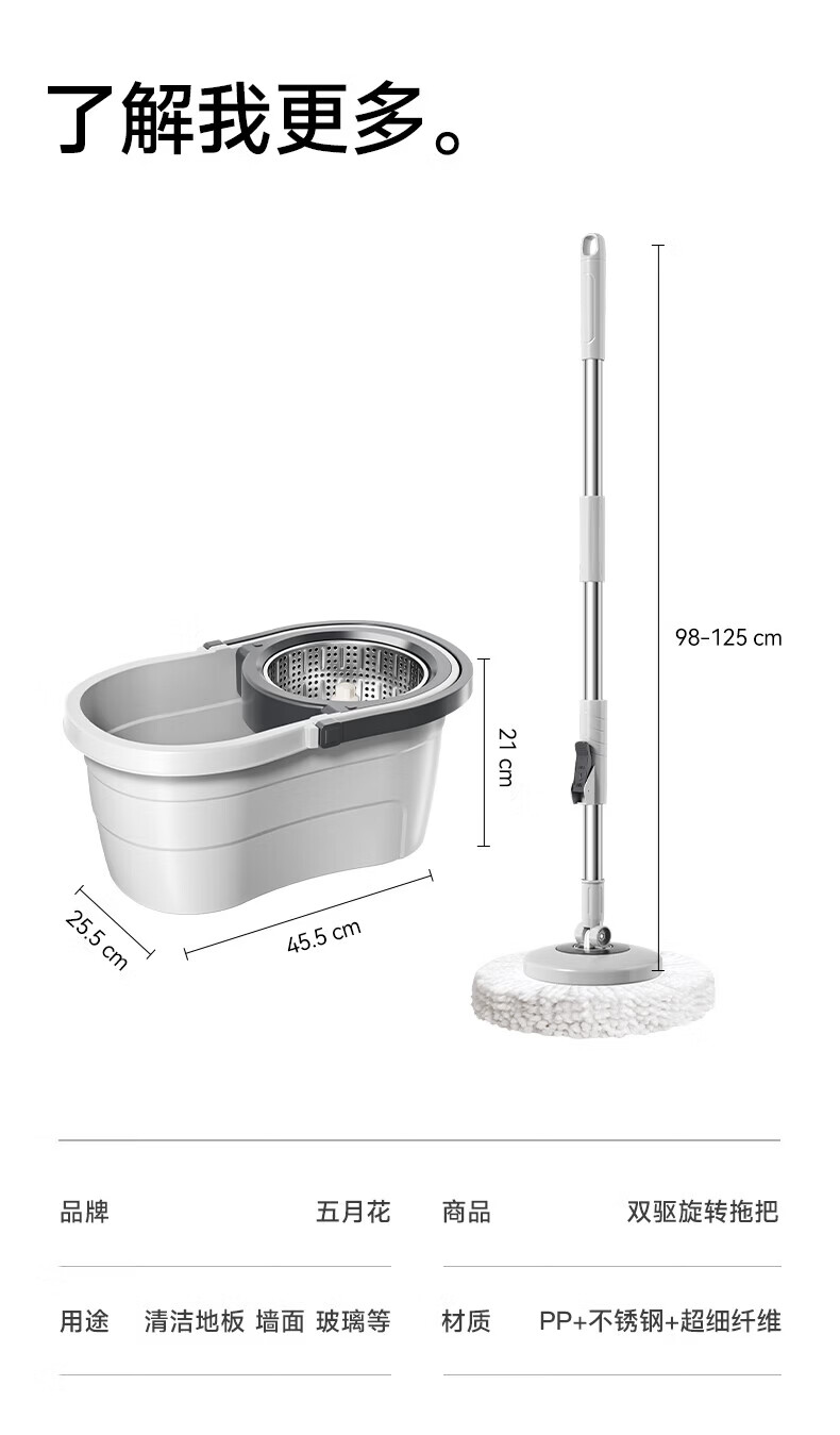五月花旋转拖把带桶一套2头家用一拖净免手洗2025拖布吸水墩布杆长120cm
