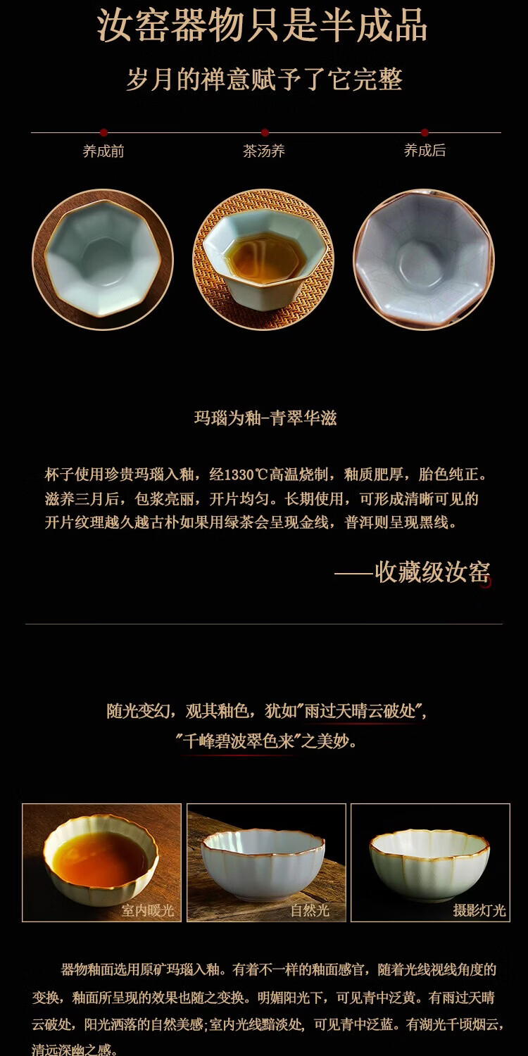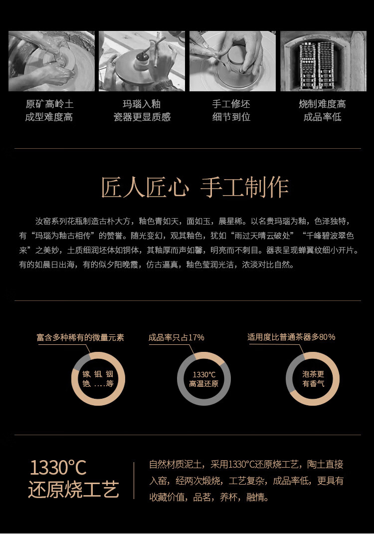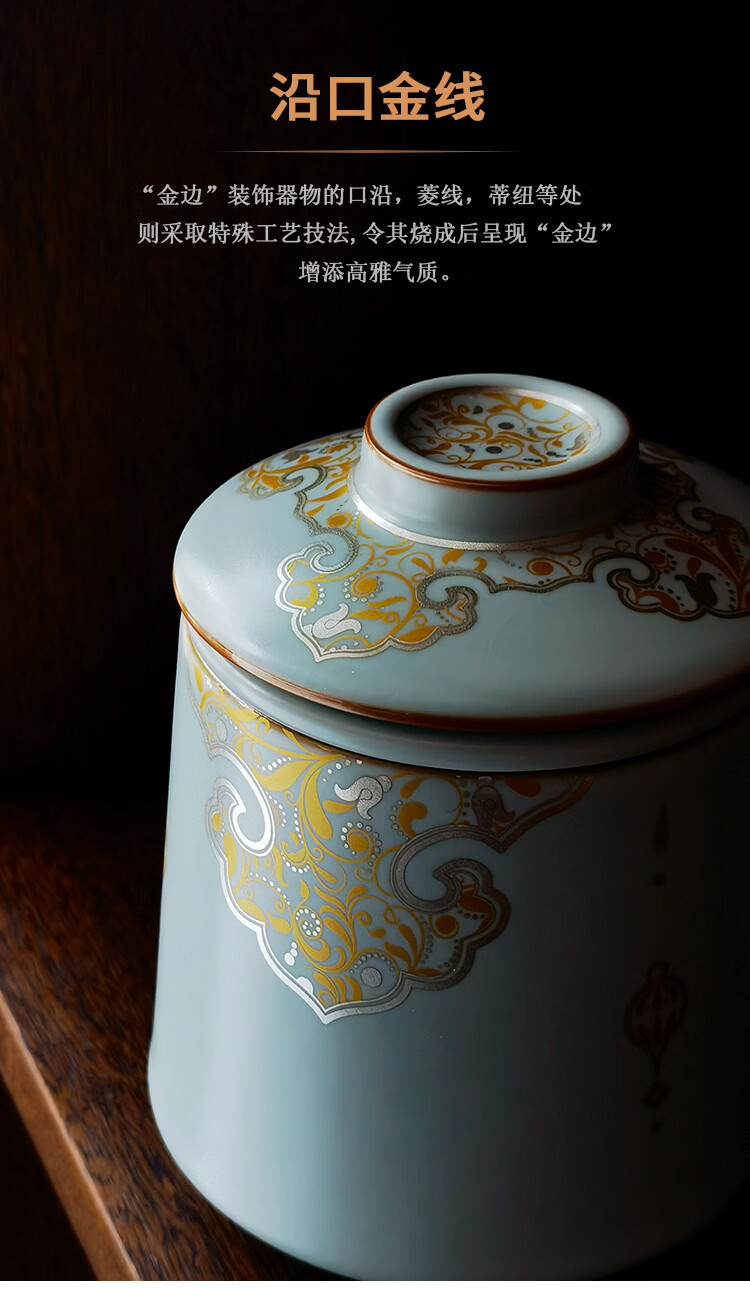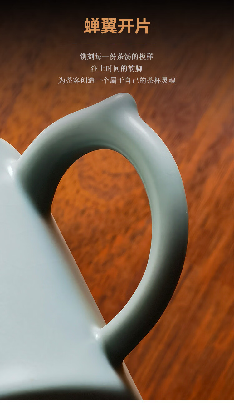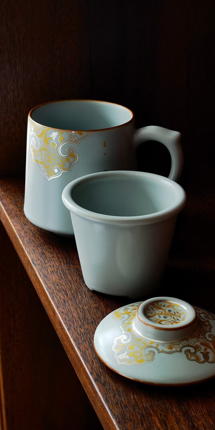 青禾窑汝窑马克杯高档陶瓷茶杯带盖过滤内胆茶水分离泡茶杯办公室喝茶杯 天青汝窑如意卷草纹(百川杯)