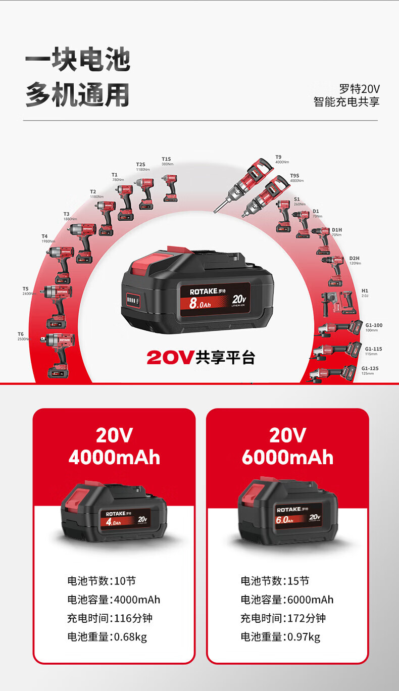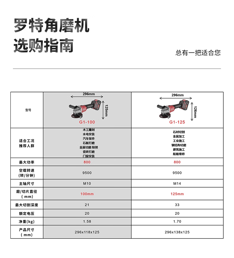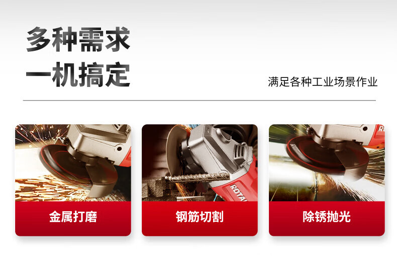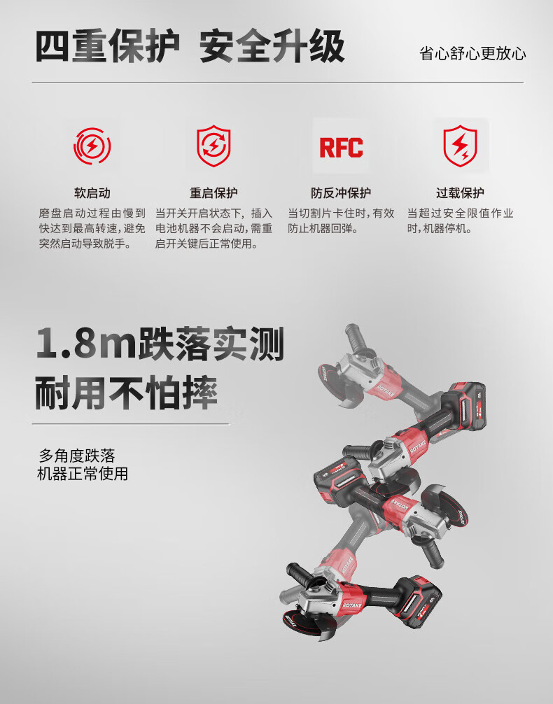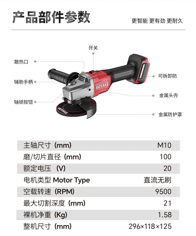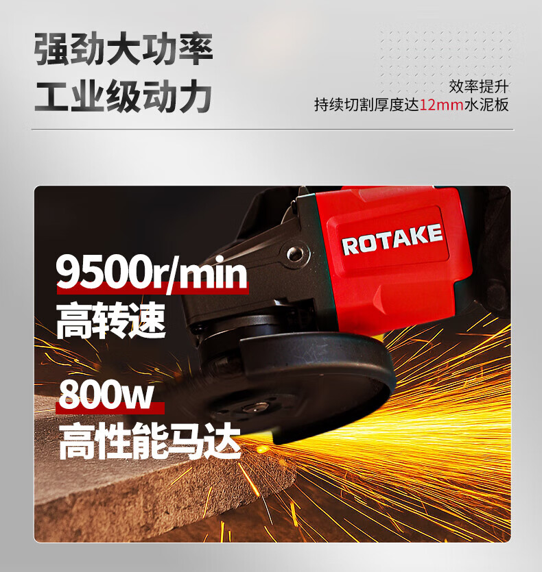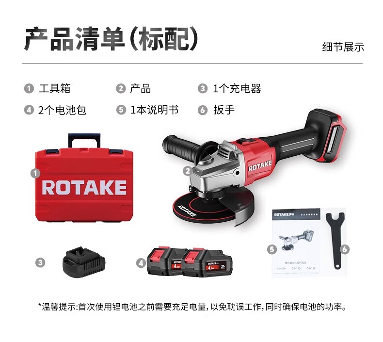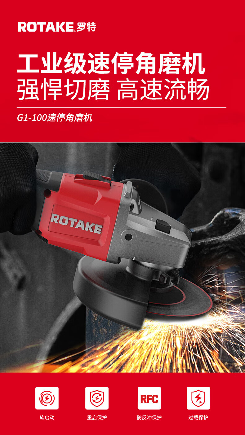 罗特锂电充电式角磨机ROTAKE工业级速停大功率无刷切割打磨抛光机 G1-100裸机【无电无充】彩盒装