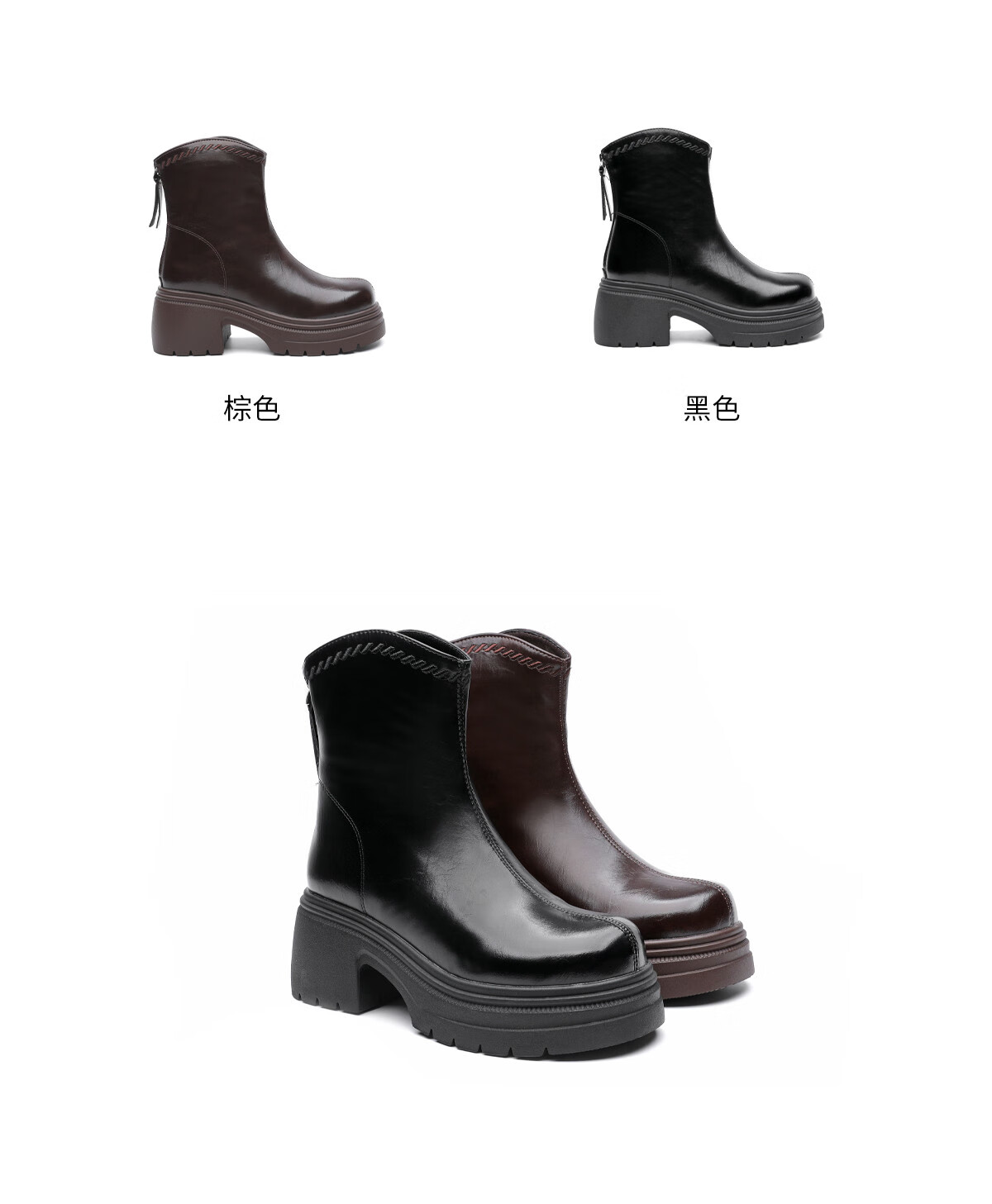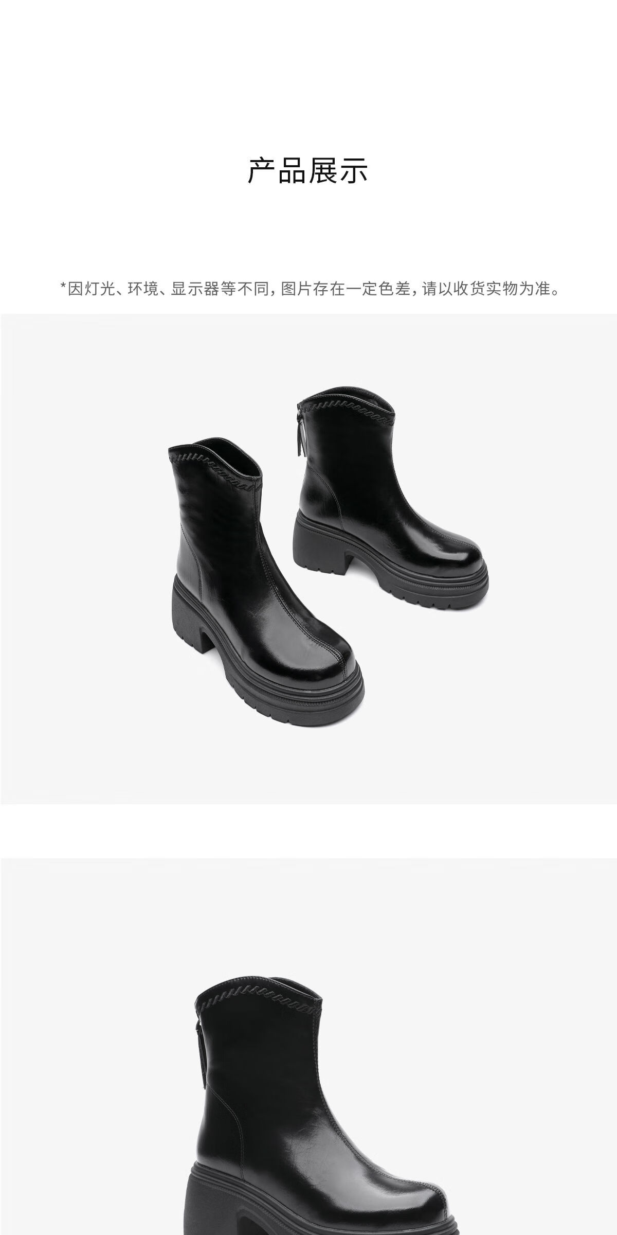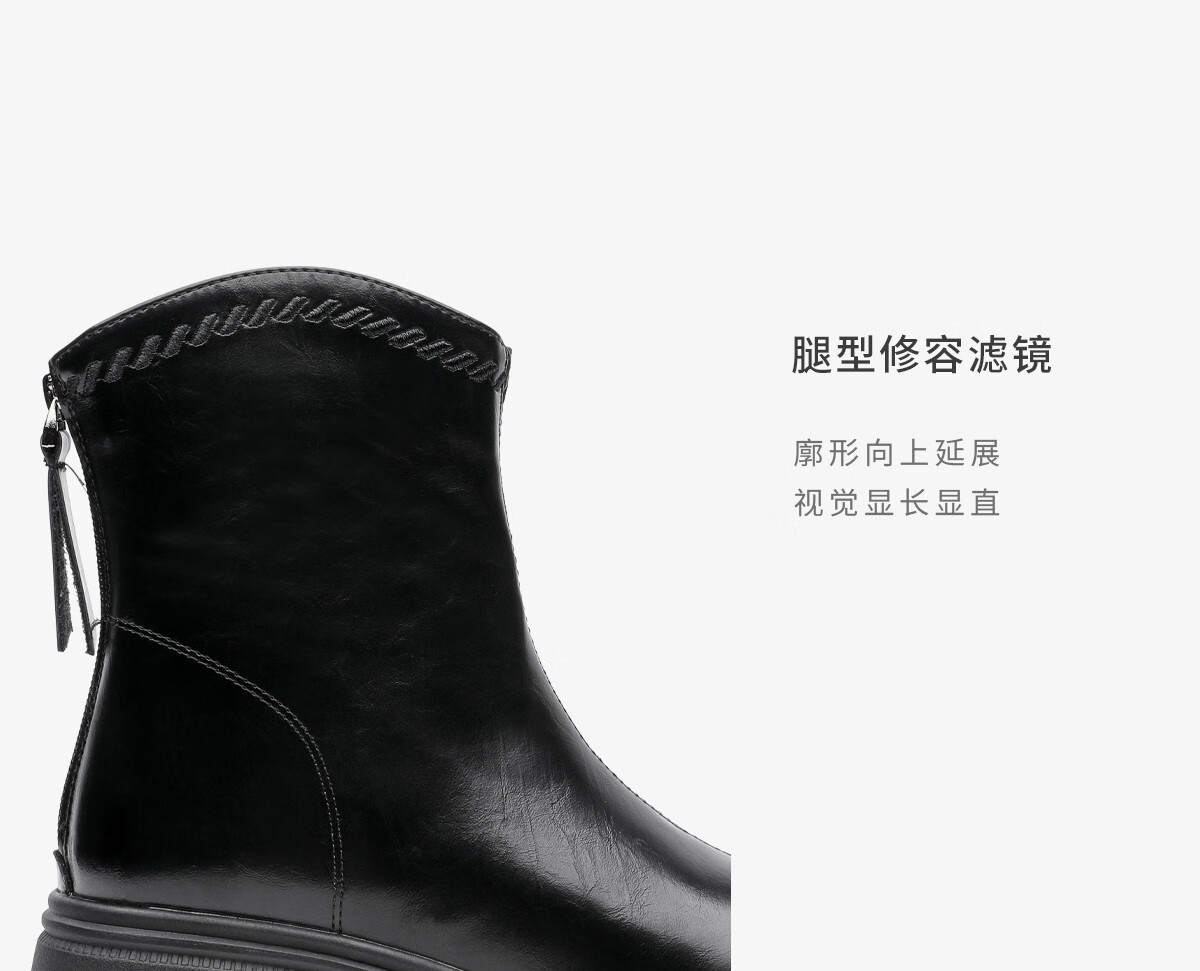 月芽儿英伦风短靴女2025秋冬季新款百搭靴子增高切尔西靴 绒里黑色01T 34
