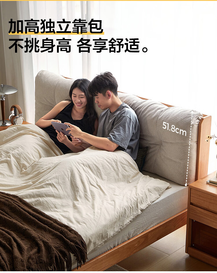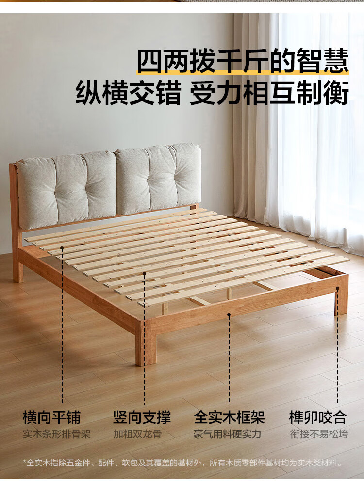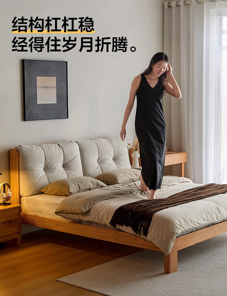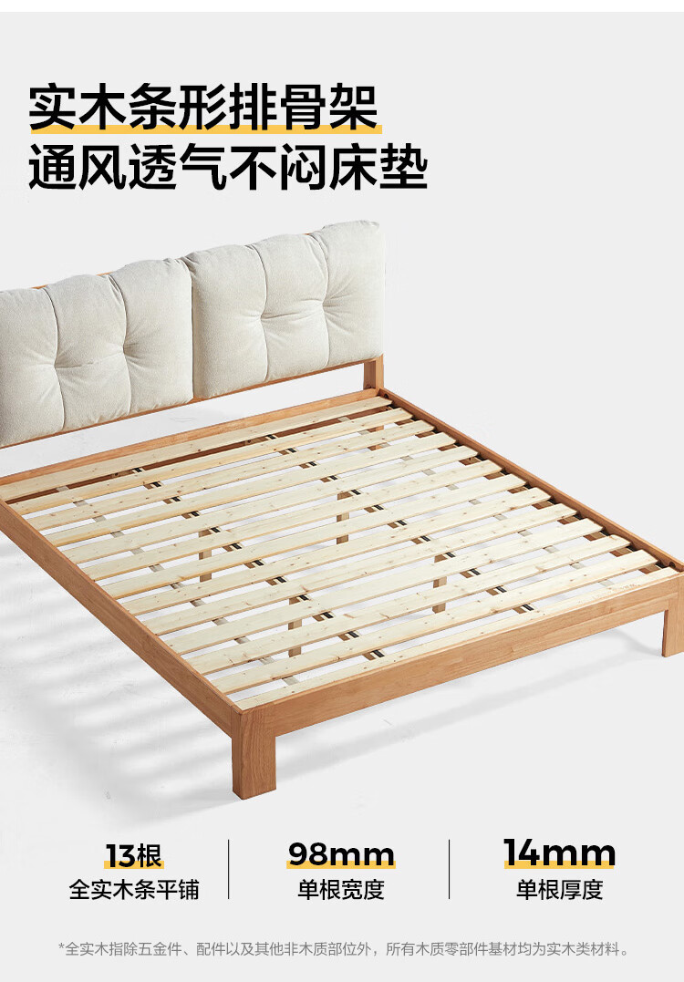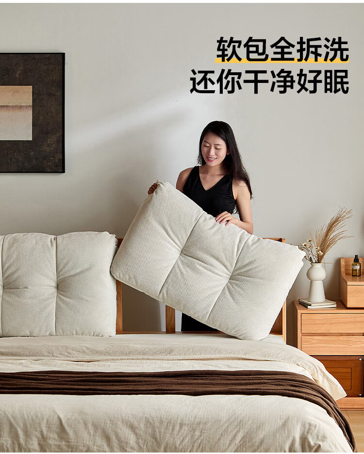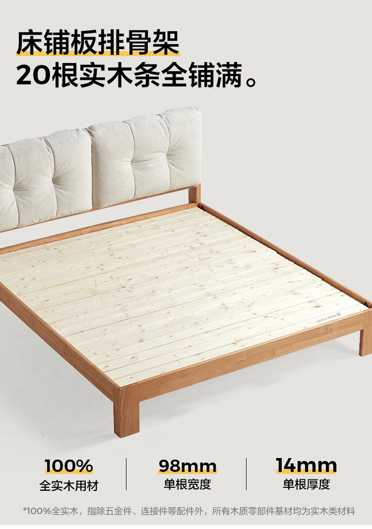 林氏家居实木床1米8双人软包床榫卯结构家具木业续木系列YE3A 排骨架|软包实木床 1.5x2米