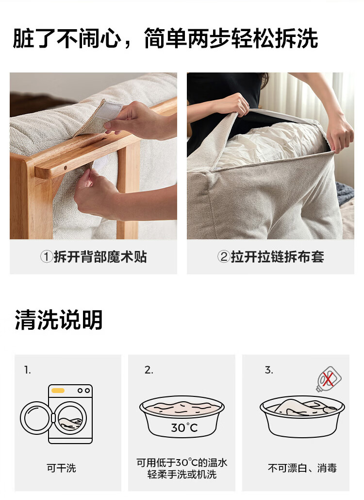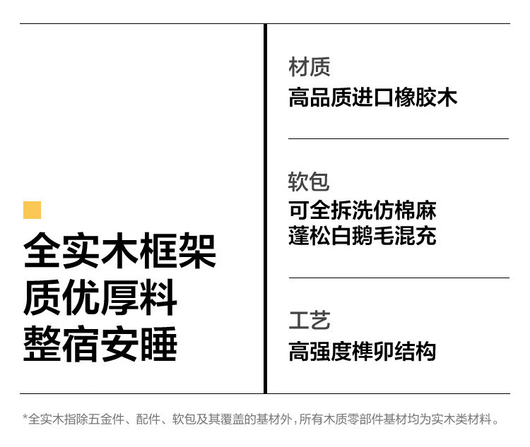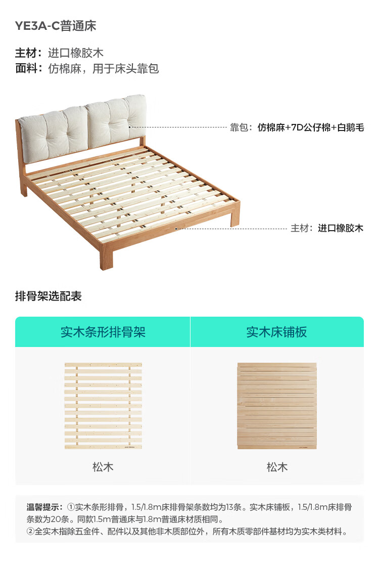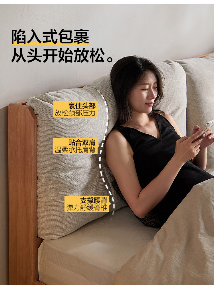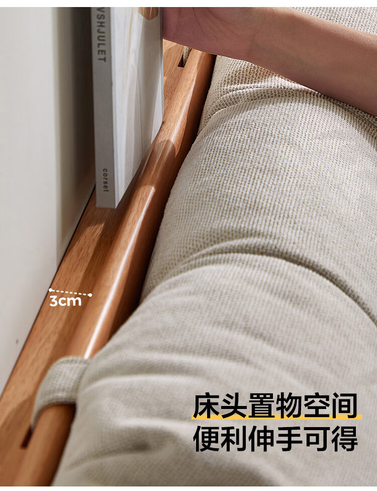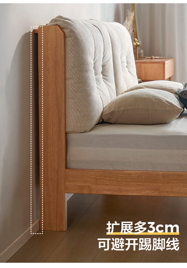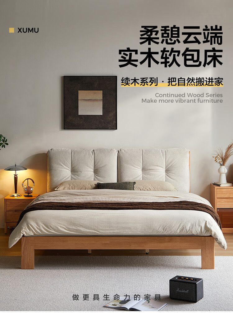 林氏家居实木床1米8双人软包床榫卯结构家具木业续木系列YE3A 排骨架|软包实木床 1.5x2米