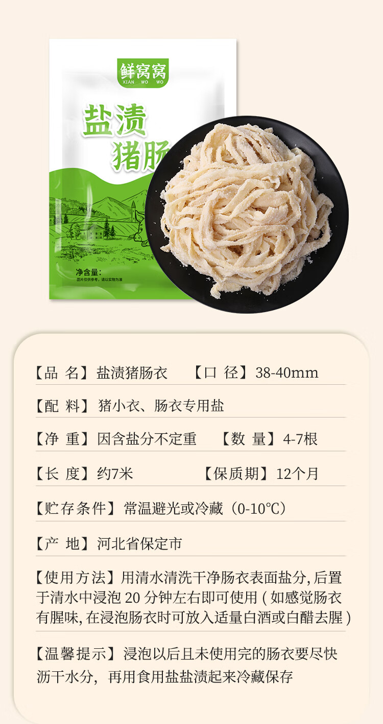 鲜窝窝 猪肠衣送全套工具约250g 灌香肠食品级含灌肠器可灌腊肠灌10斤肉