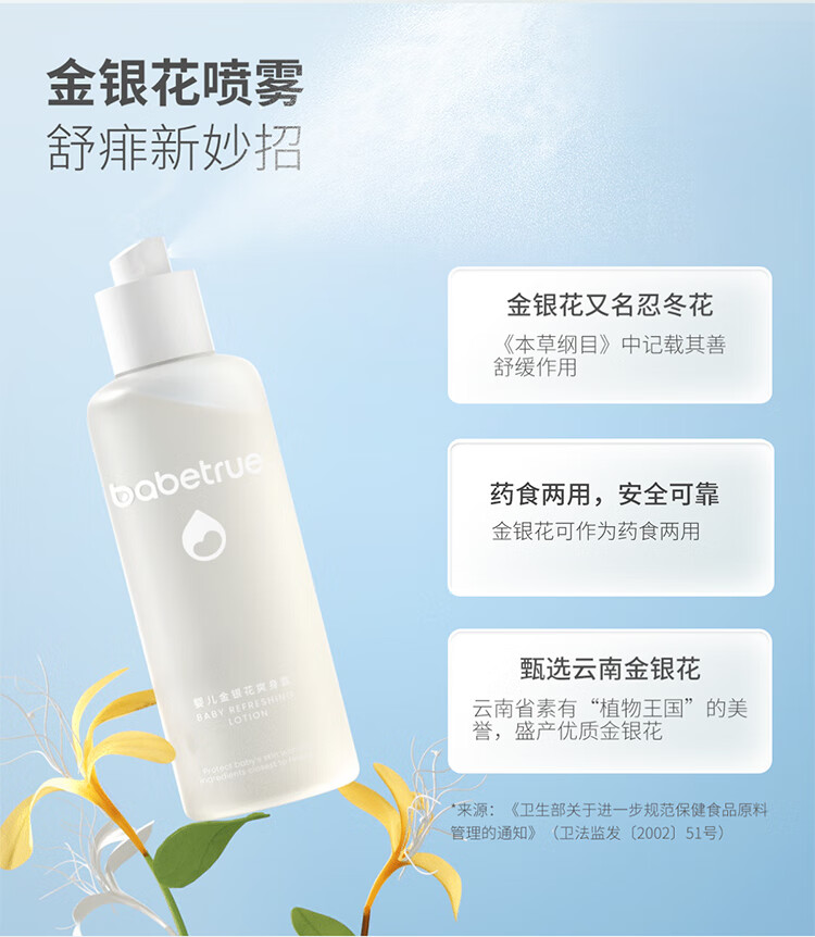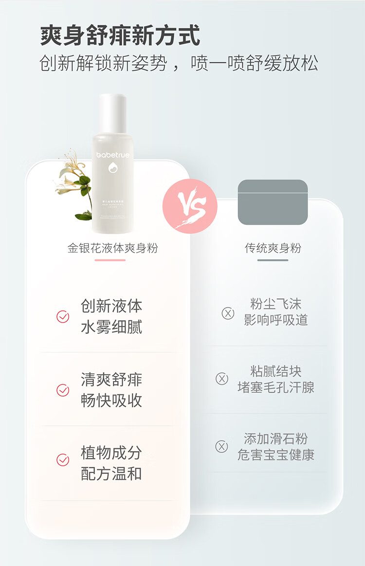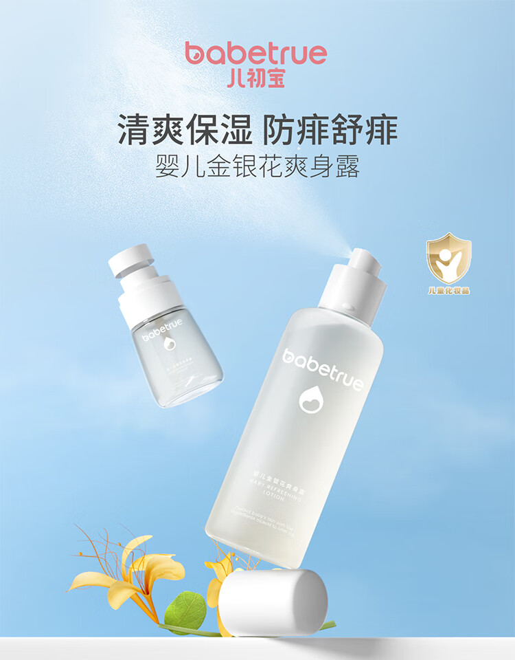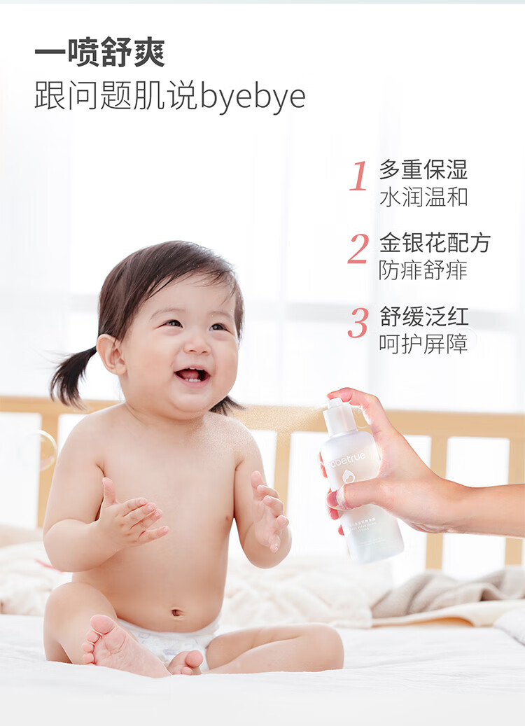 儿初宝(babetrue)婴儿爽身露 宝宝液体爽身粉 儿童痱子粉 吸汗去痱防痱喷雾200ml
