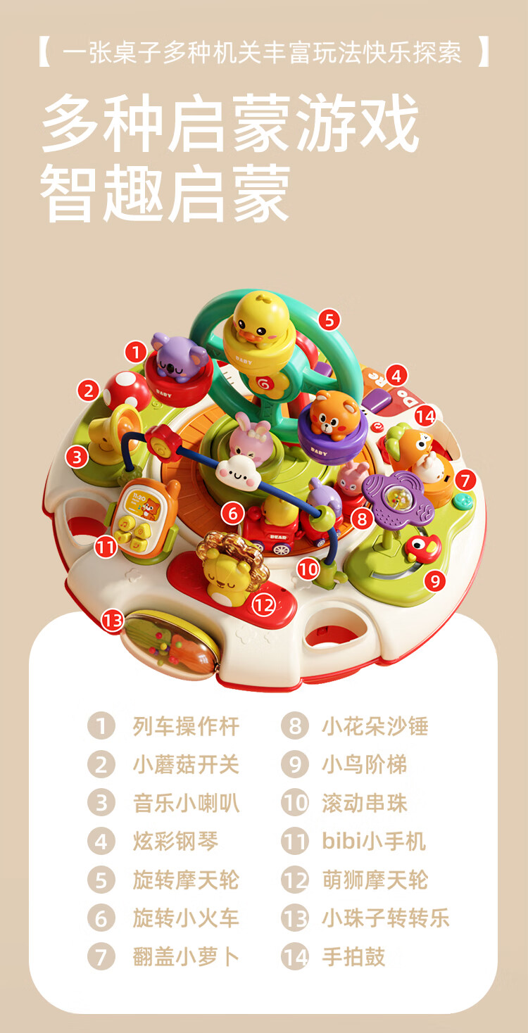 奥智嘉儿童玩具1-3岁多功能游戏桌婴儿早教益智多面体一岁宝宝新年礼物
